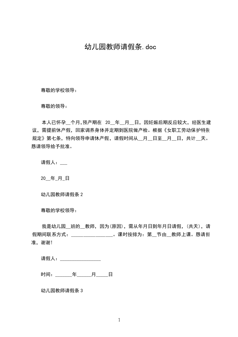 幼儿园教师请假条10