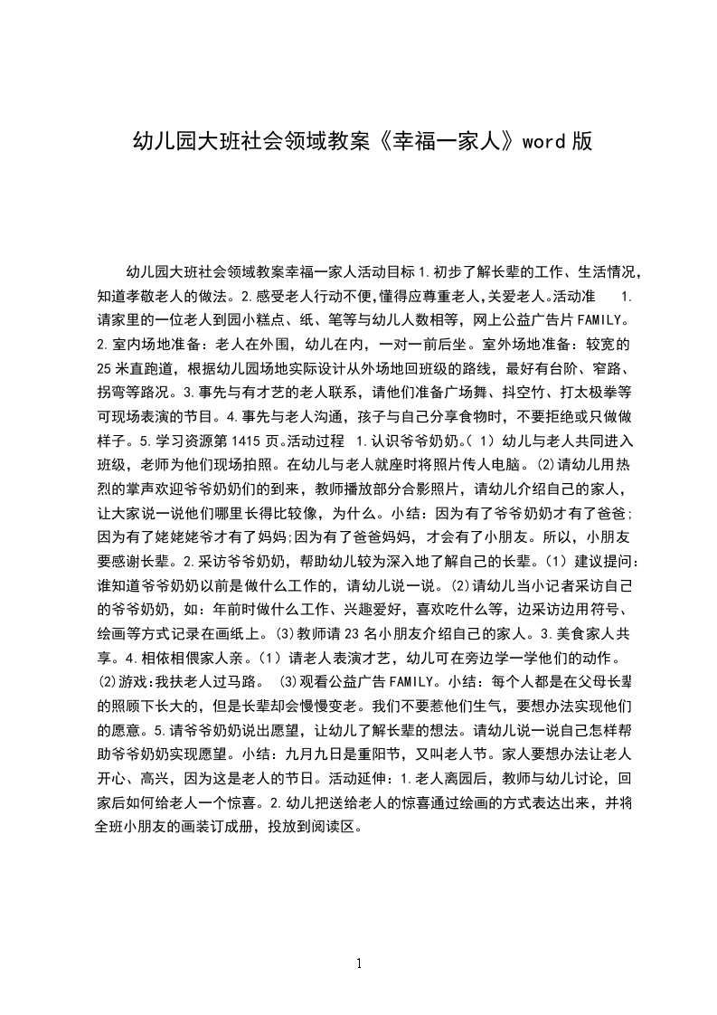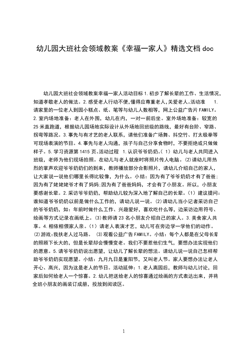 1.请家里的一位老人到园小糕点、纸、笔等与幼儿人数相等,网上公益广告片FAMILY。