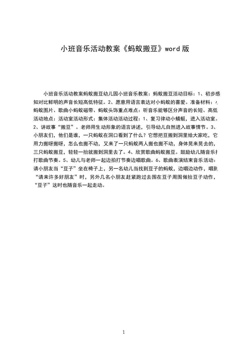 二、活动目标初步学习邀请舞蚂蚁搬豆,能随音乐节奏做出蚂蚁走路、打招呼的动作;根据蚂蚁搬豆的故事情节,创编音乐游戏。