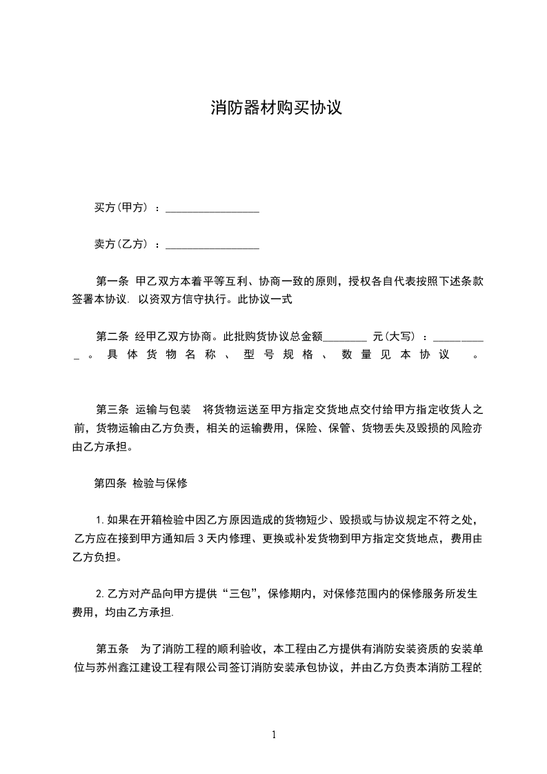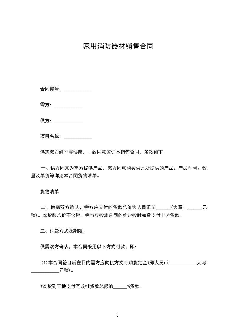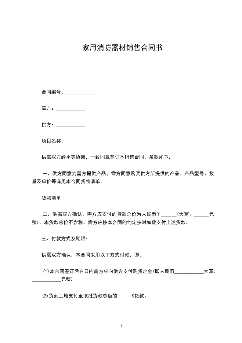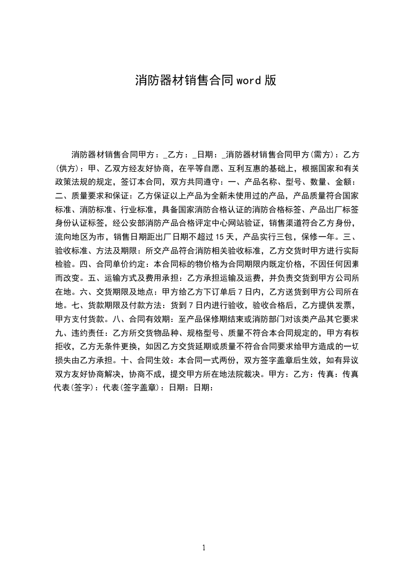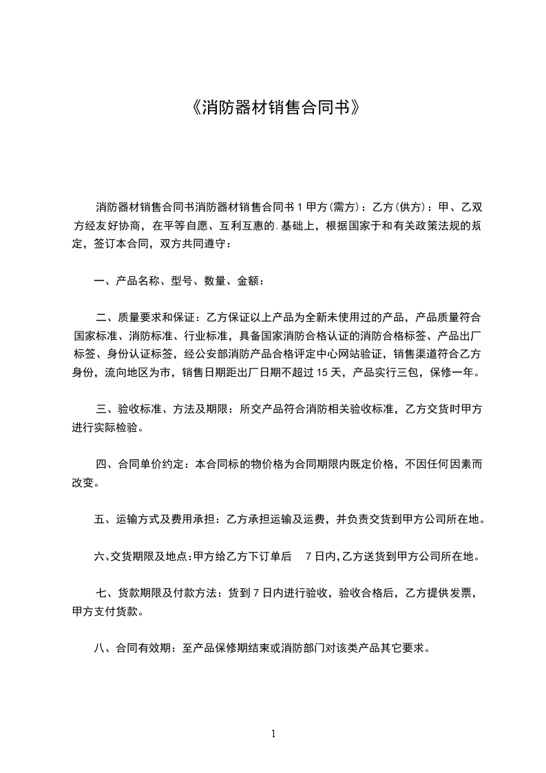 消防器材销售合同甲方:_乙方:_日期:_消防器材销售合同甲方(需方):乙方(供方):甲、乙双方经友好协商,在平等自愿、互利互惠的基础上,根据国家和有关政策法规的规定,签订本合同,双方共同遵守: