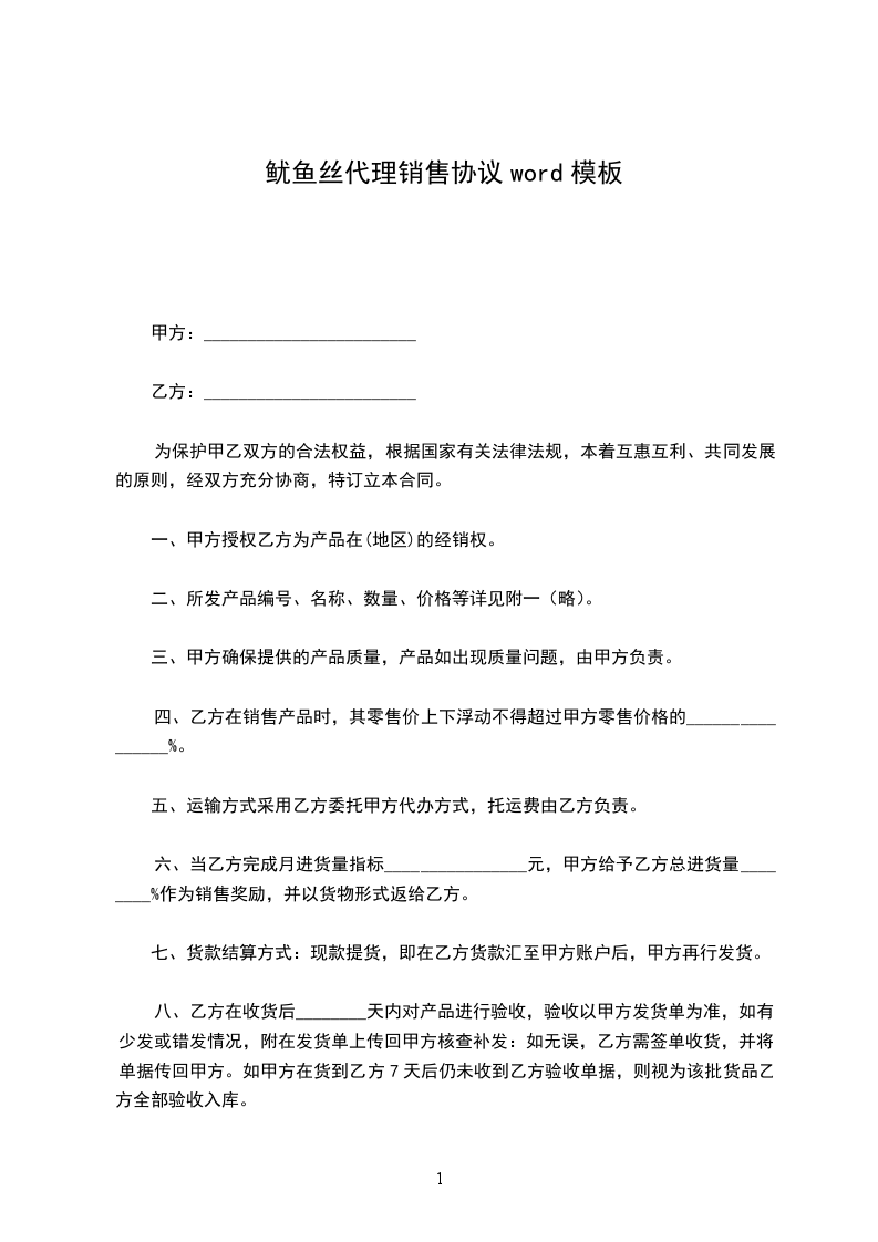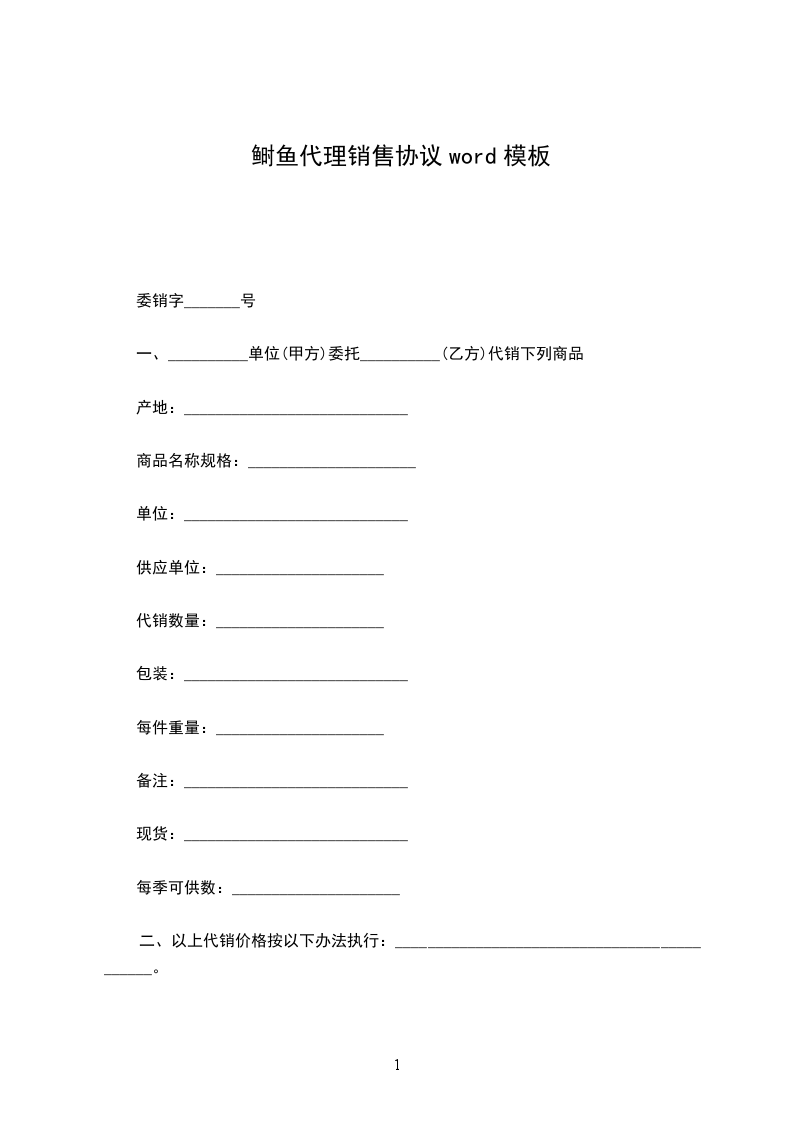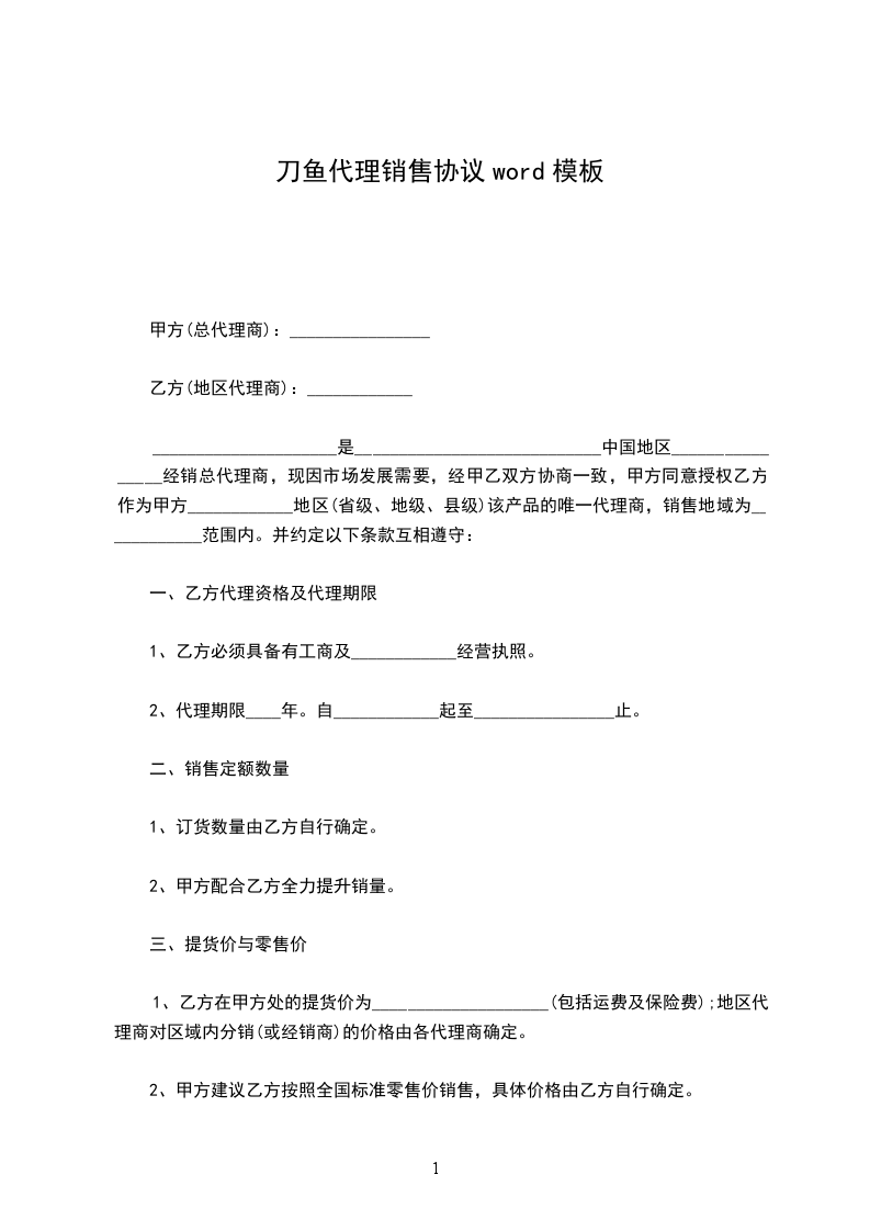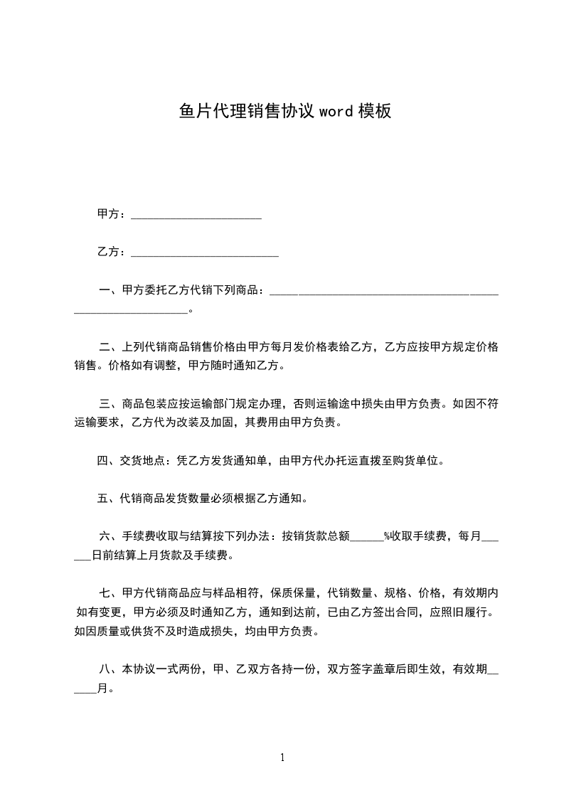 银鱼代理销售协议word模板