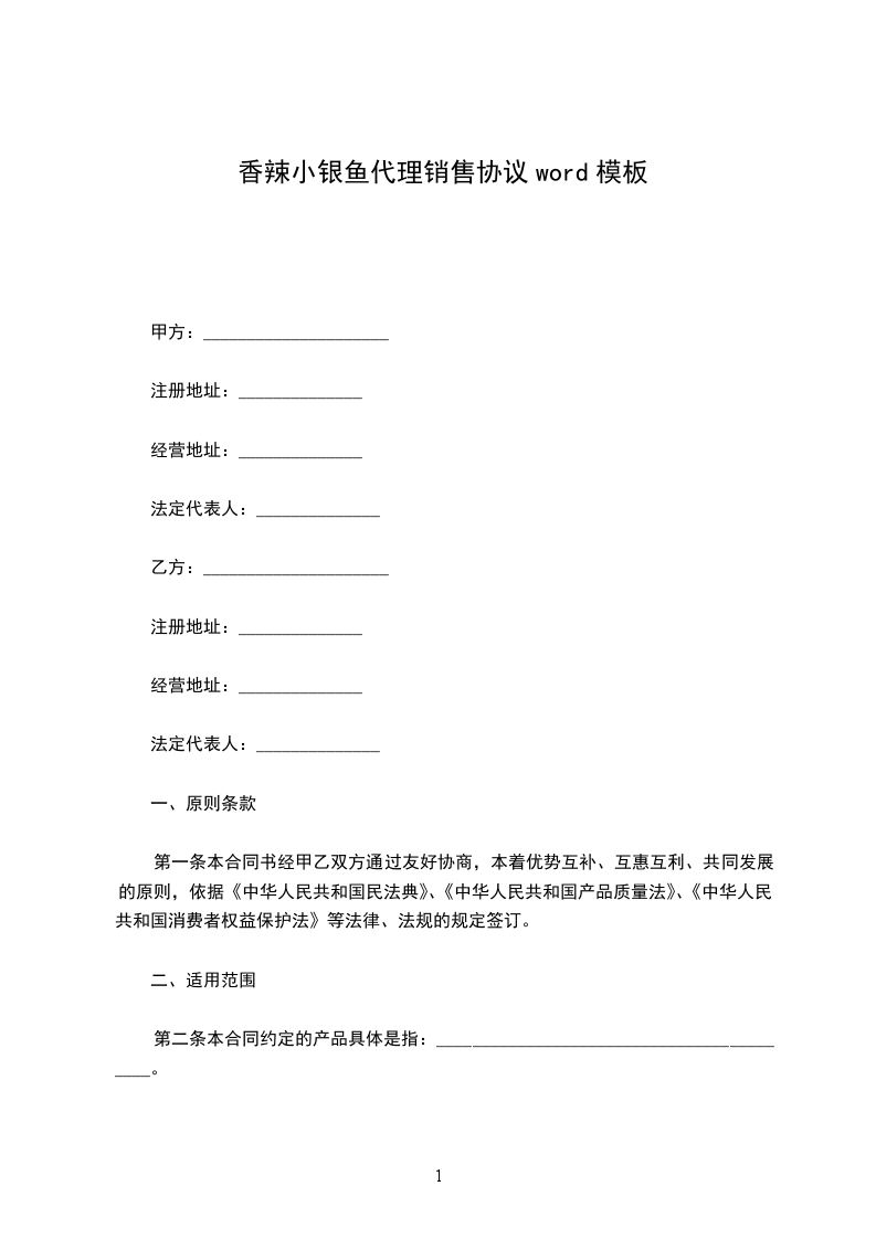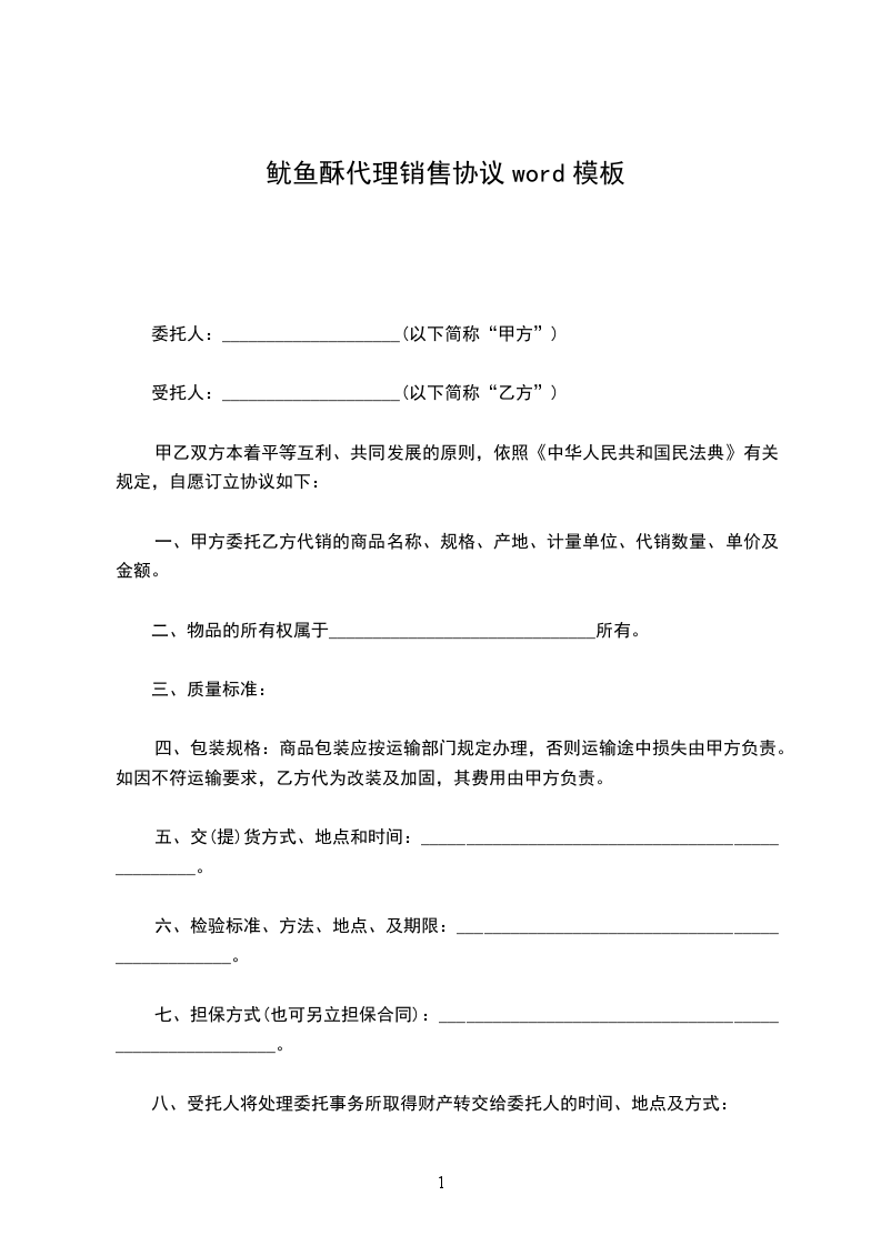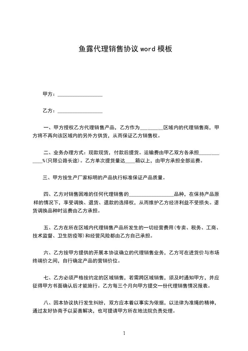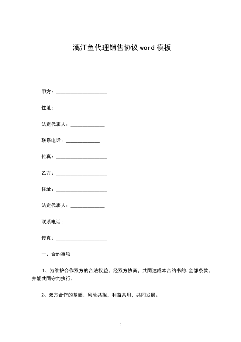 银鱼代理销售协议word模板