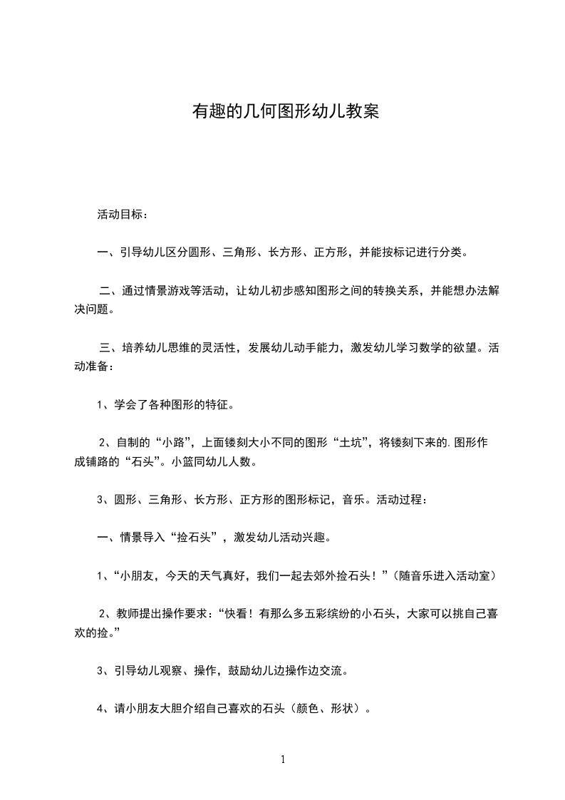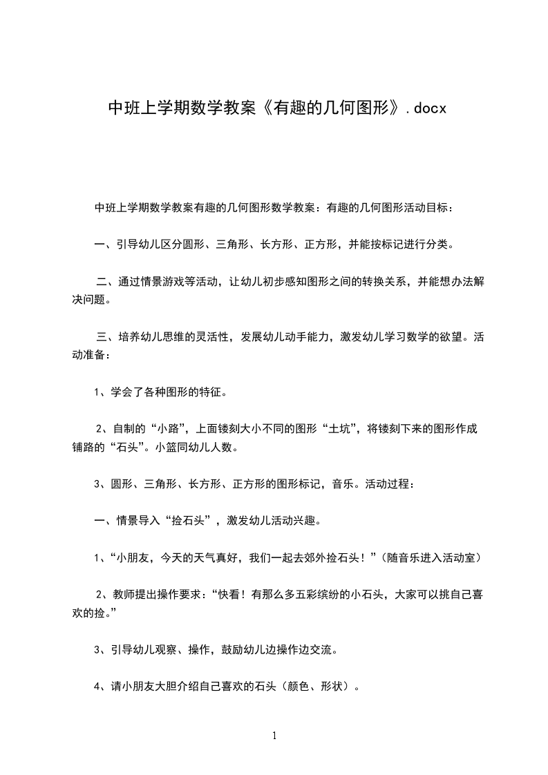 中班上学期数学教案有趣的几何图形幼儿园中班数学教案:有趣的几何图形活动目标: