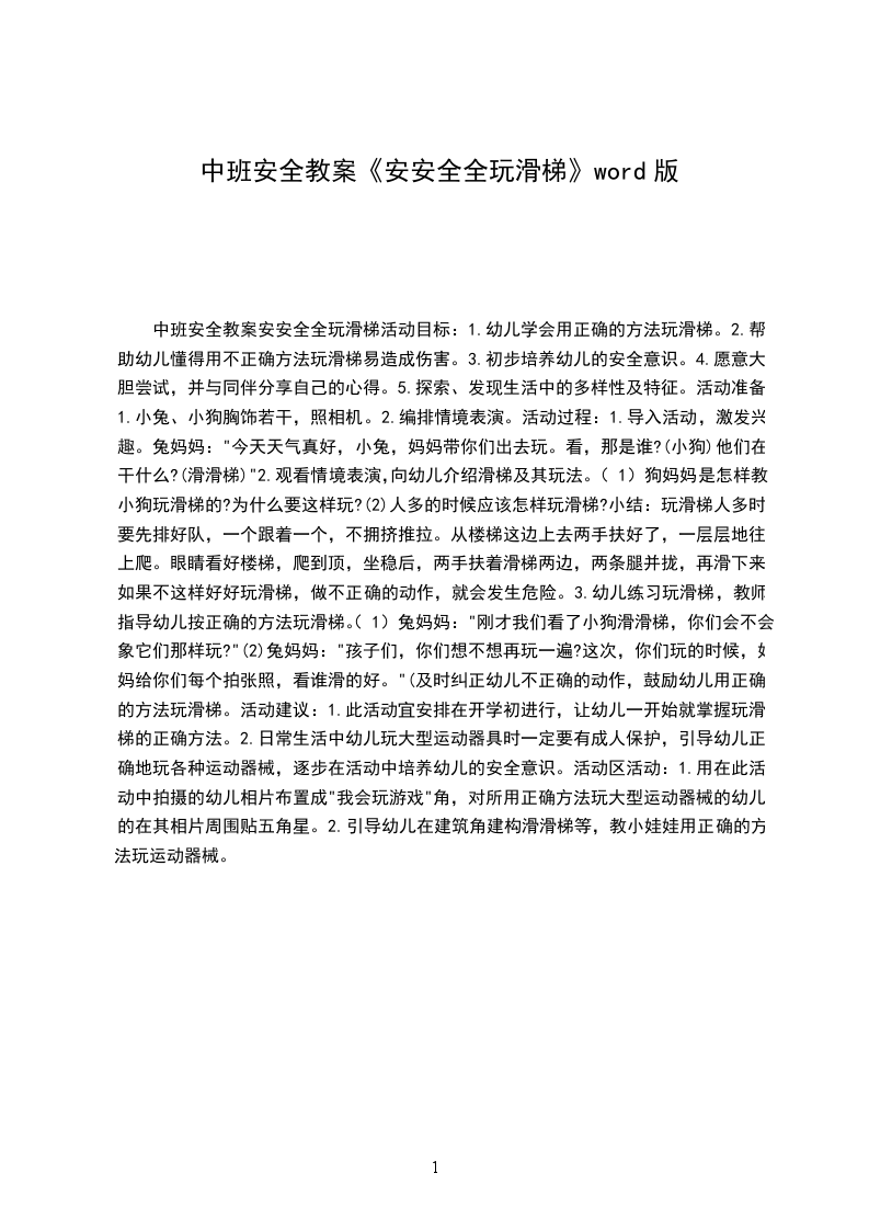 2.帮助幼儿懂得用不正确方法玩滑梯易造成伤害。