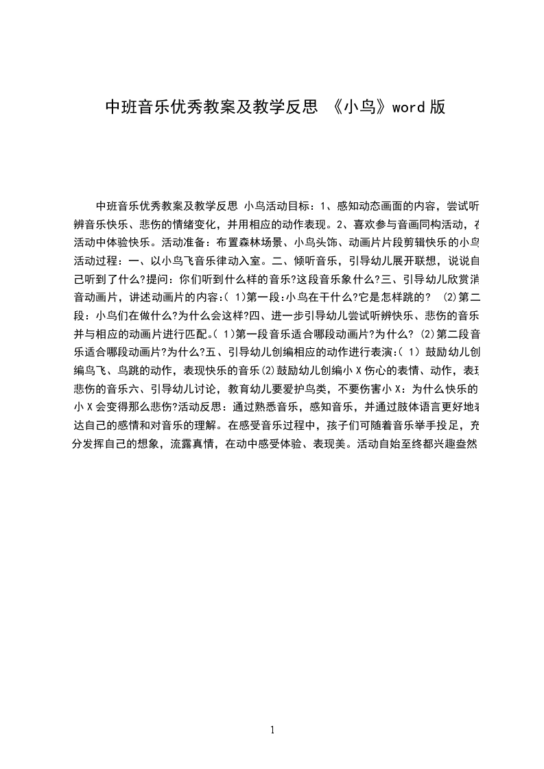 中班音乐优秀教案及教学反思 小鸟活动目标: