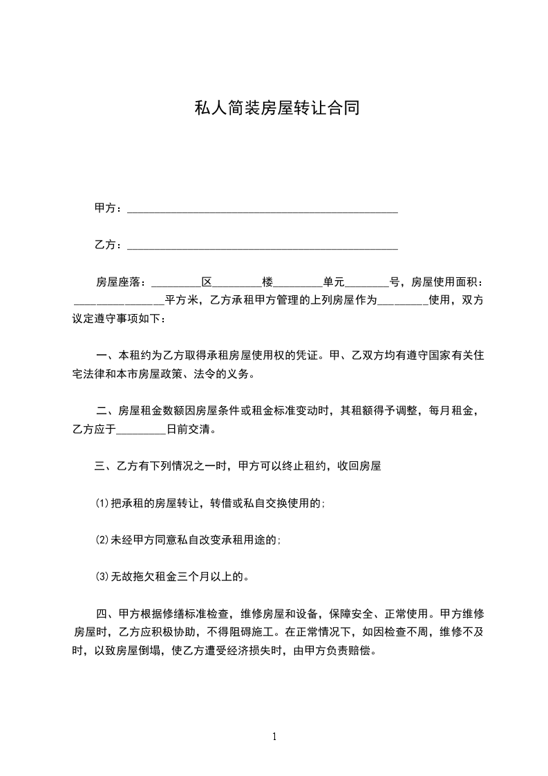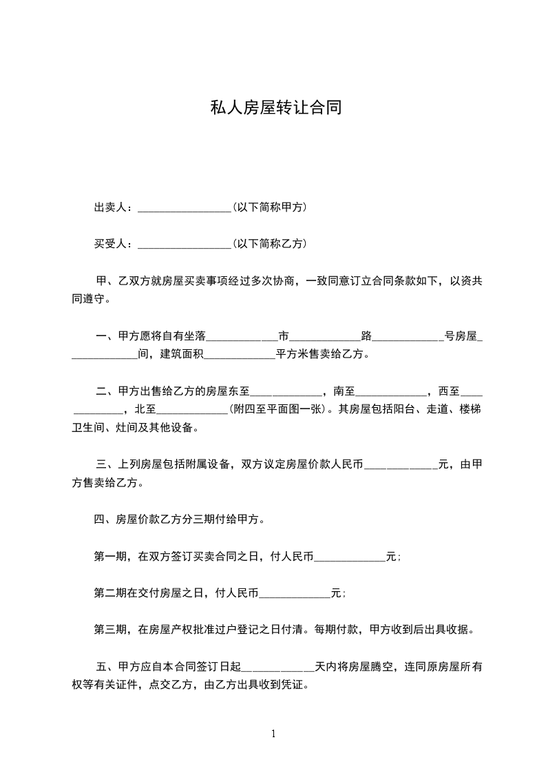 一、甲方愿将自有坐落_____________市_____________路_____________号房屋_____________间,建筑面积_____________平方米售卖给乙方。