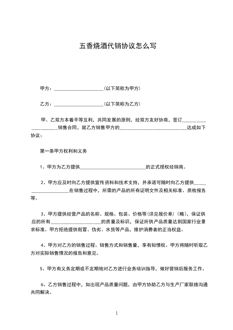 为规范甲、乙双方合作的运作流程,进一步明确甲、乙双方合作当事人的权利及义务,甲、乙双方就甲方委托乙方代为销售____________事宜,本着平等自愿、诚实守信、合法共赢、友好协商的原则,达成如下协议: