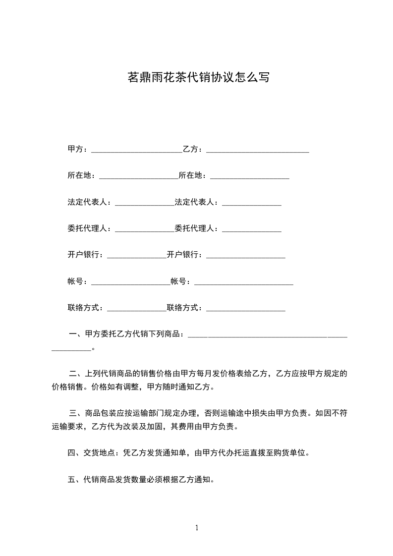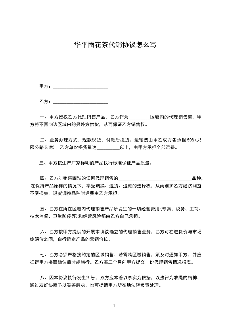 华平雨花茶代销协议怎么写