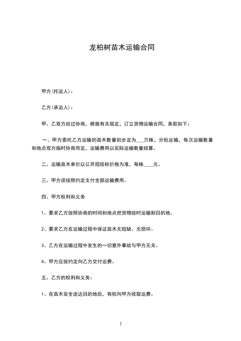 一、甲方委托乙方运输的苗木数量初步定为___万株,分批运输,每次运输数量和地点双方临时协商而定,运输费用以实际运输数量结算。