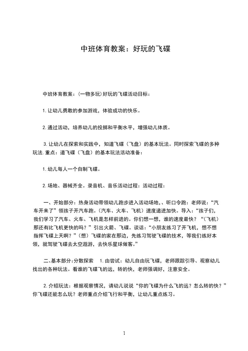 2、探索飞盘的多种玩法,发展创造性思维。
