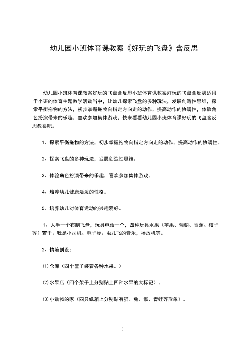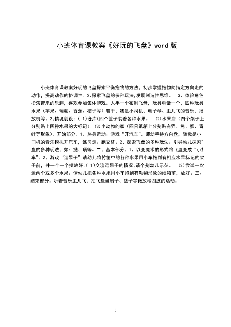 小班体育课教案好玩的飞盘探索平衡拖物的方法,初步掌握拖物向指定方向走的动作,提高动作的协调性。
