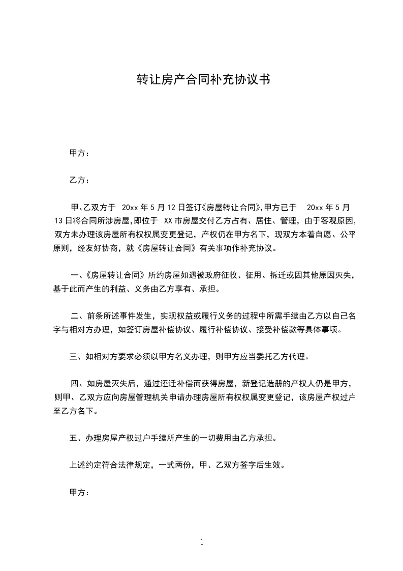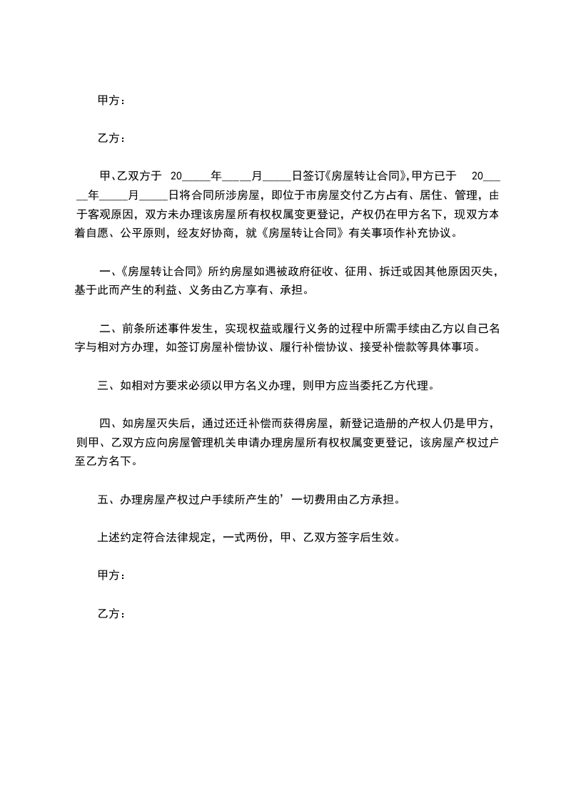 甲乙双方就下列房屋的买卖订立如下补充协议,以资双方共同遵守。