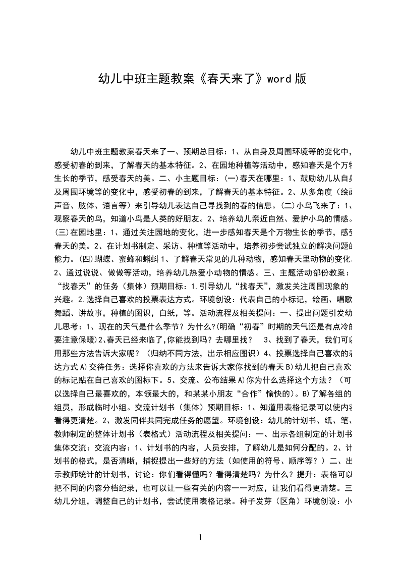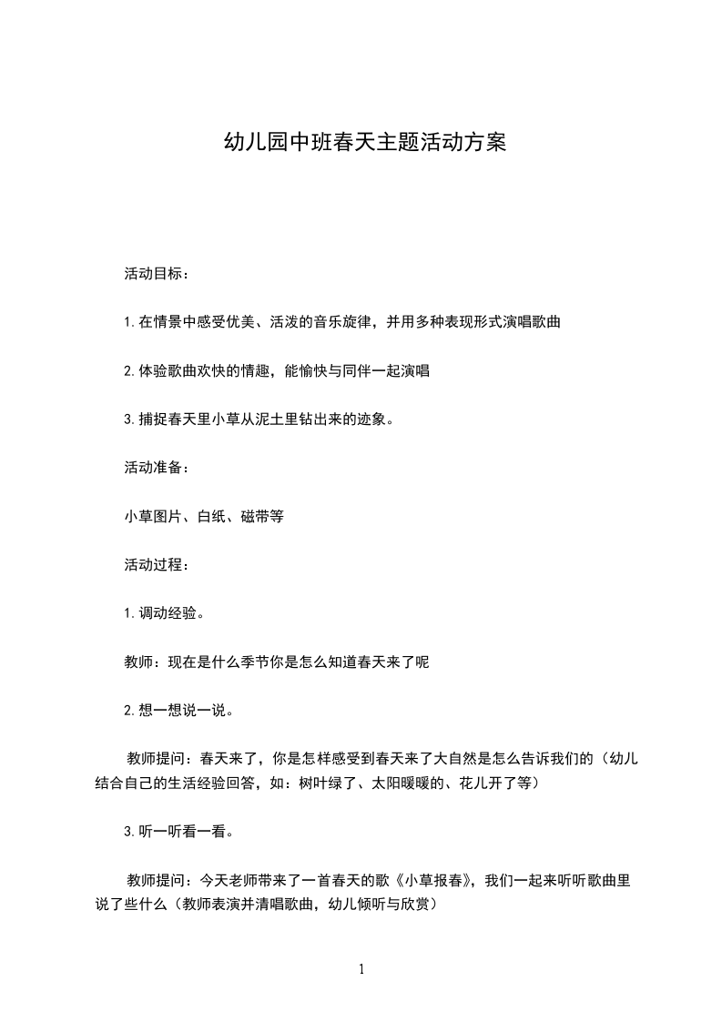 1、从自身及周围环境等的变化中,感受初春的到来,了解春天的基本特征。