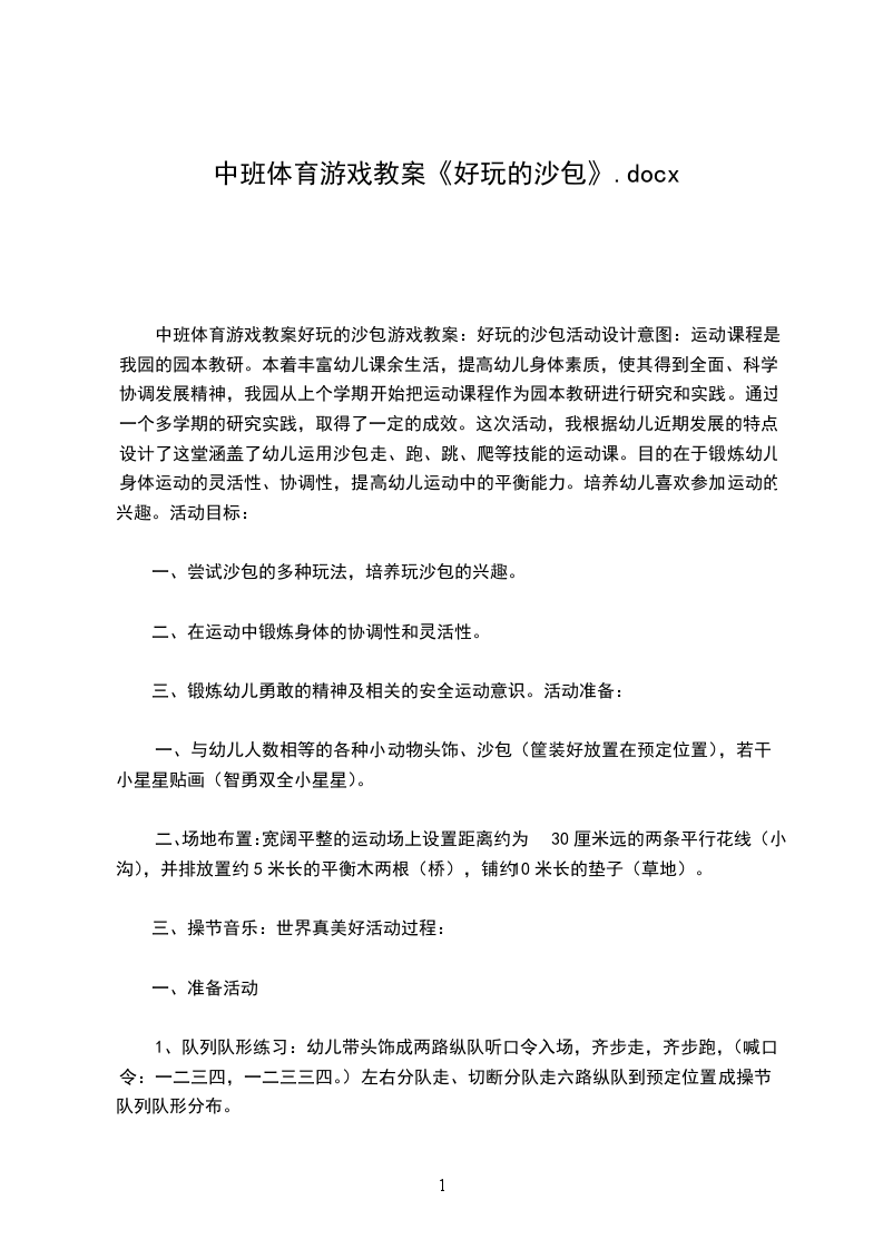 幼儿园大班游戏教案玩沙包活动名称:玩沙包活动目标: