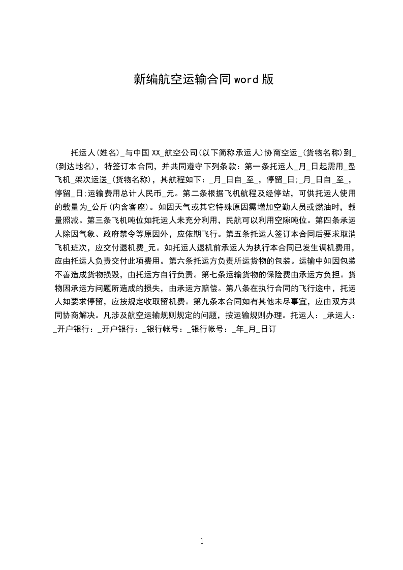 第九条本合同如有其他未尽事宜,应由双方共同协商解决。凡涉及航空运输规则规定的问题,按运输规则办理。托运人:_承运人:_开户银行:_开户银行:_银行帐号:_银行帐号:_年_月_日订