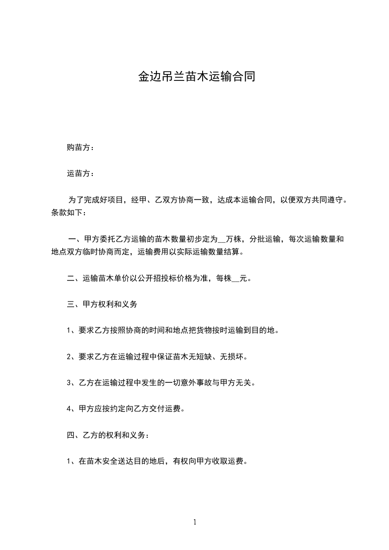 2、要求乙方在运输过程中保证苗木无短缺、无损坏。
