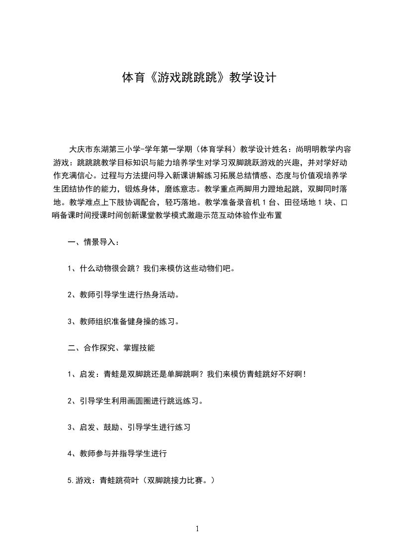 (三)幼儿讲述自己的跳法,个别幼儿进行示范。师:你们刚才是怎么跳的?
