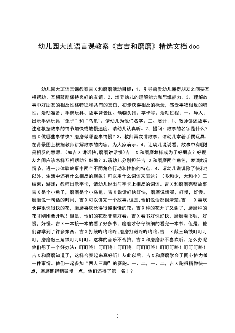 幼儿园大班语言课教案吉X和磨磨活动目标: