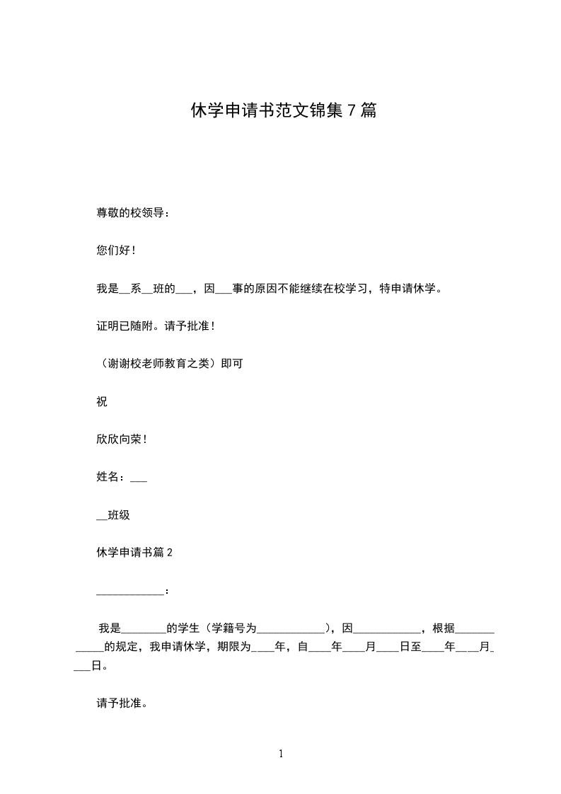 尊敬的____领导: