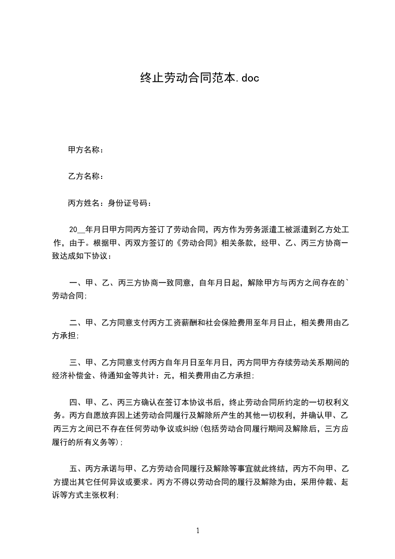 一、甲、乙、丙三方协商一致同意,自年月日起,解除甲方与丙方之间存在的`劳动合同;