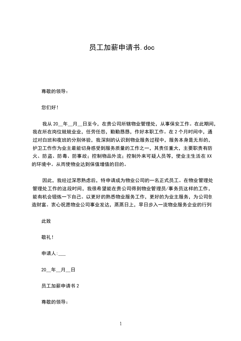 员工加薪申请书2
