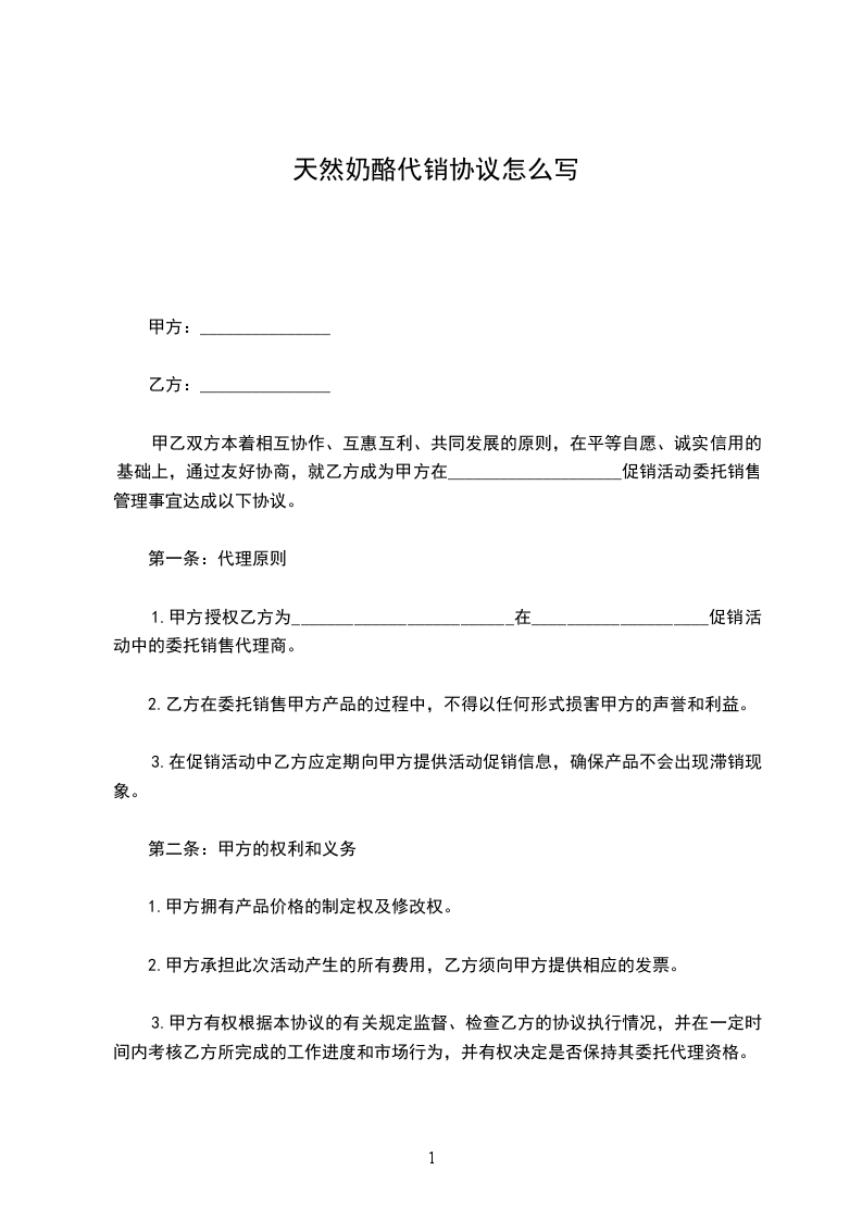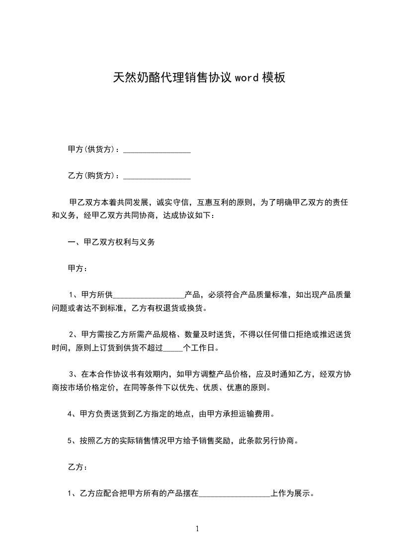 奶酪固齿代理销售协议word模板