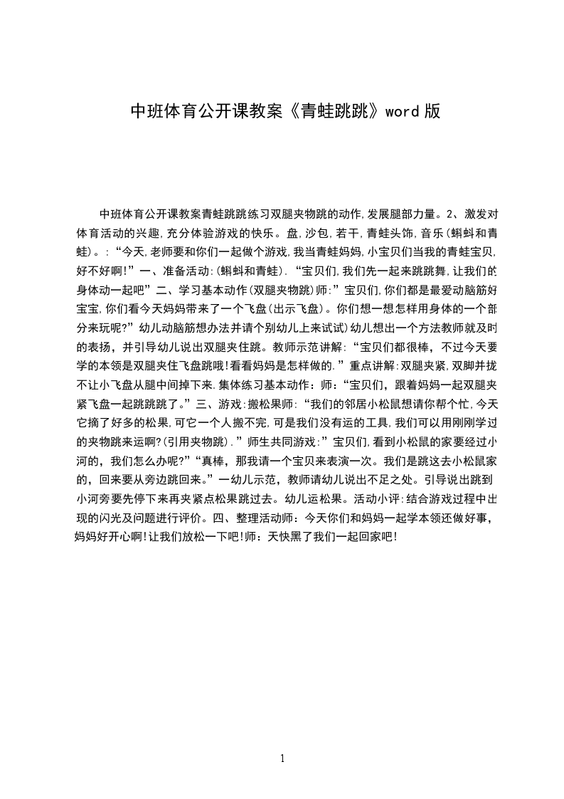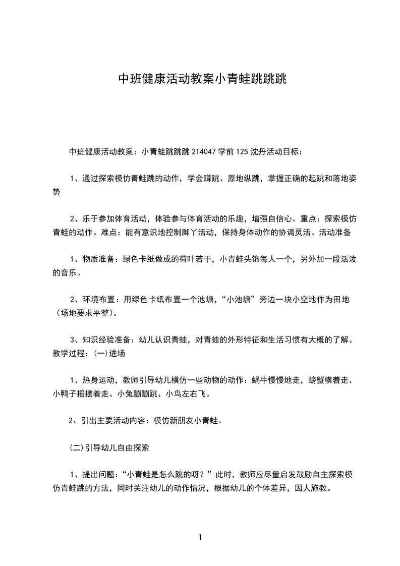 中班体育公开课教案青蛙跳跳练习双腿夹物跳的动作,发展腿部力量。