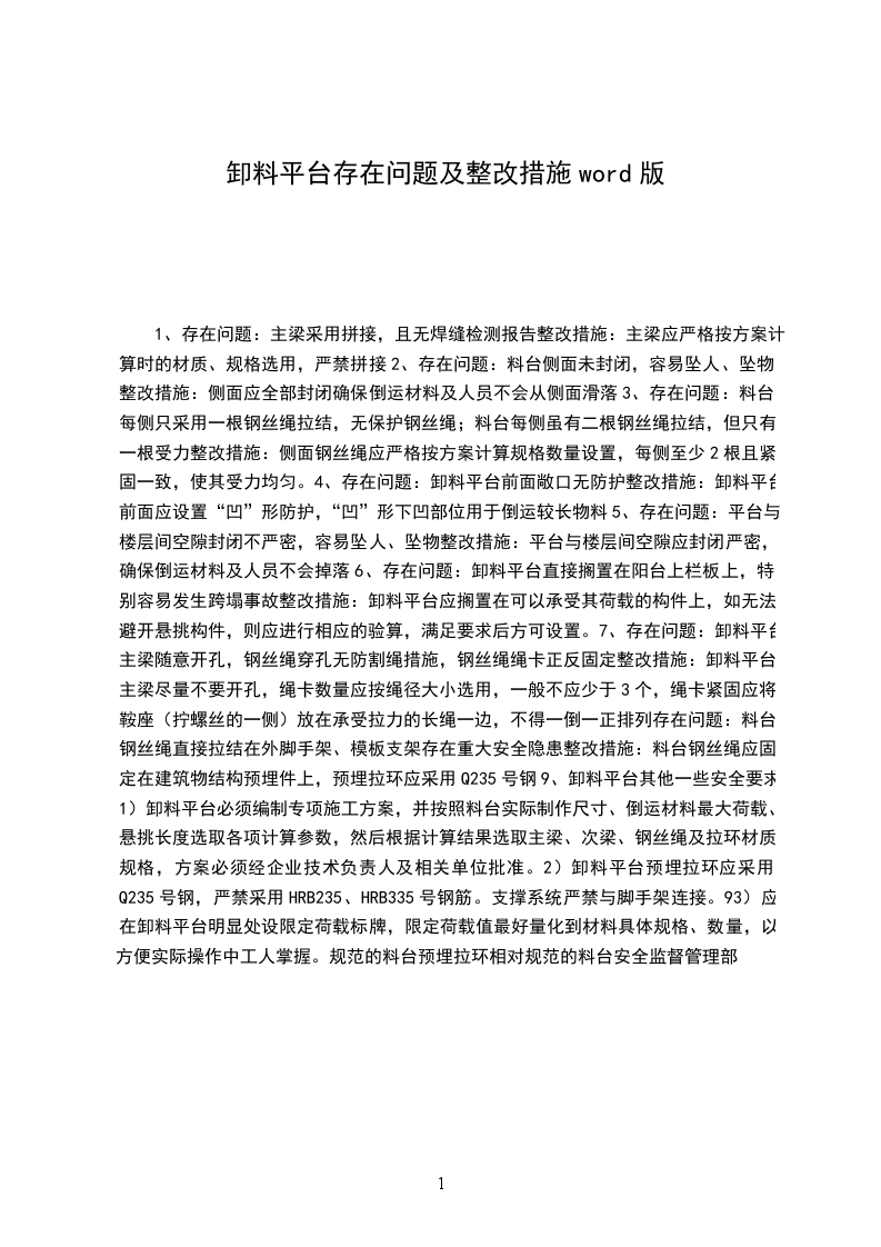 2、存在问题:料台侧面未封闭,容易坠人、坠物整改措施:侧面应全部封闭确保倒运材料及人员不会从侧面滑落