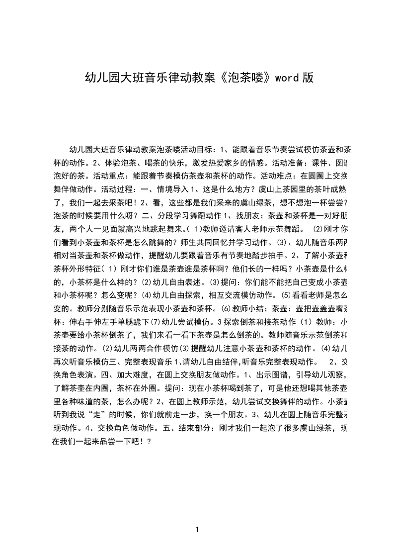 幼儿园大班音乐律动教案泡茶喽活动目标: