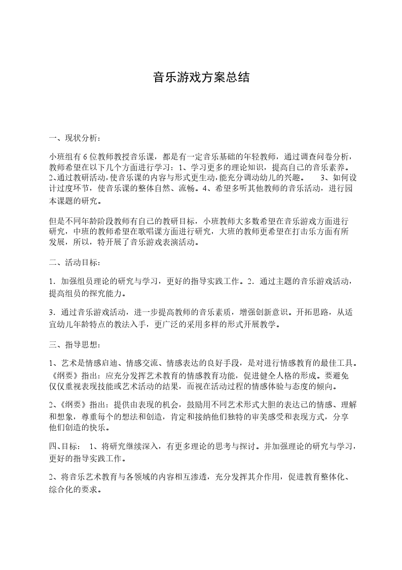 幼儿音乐游戏实施活动方案5篇幼儿音乐游戏实施活动方案1活动目标
