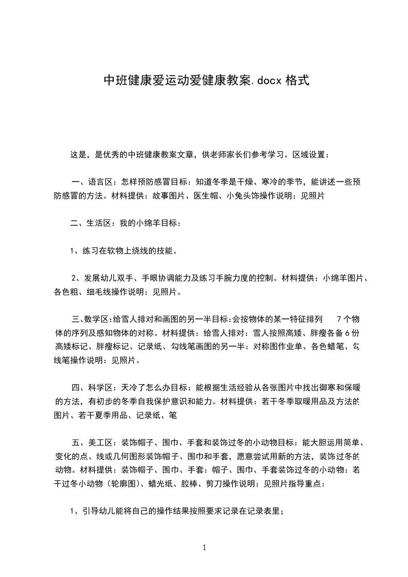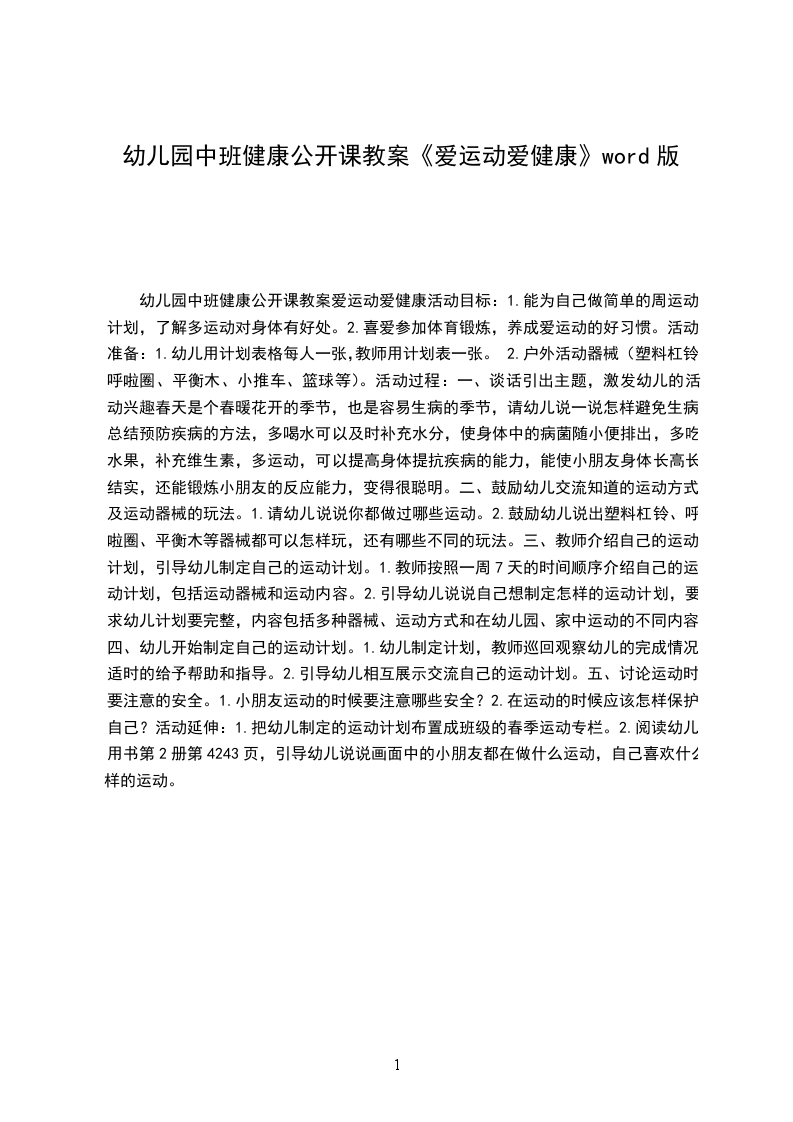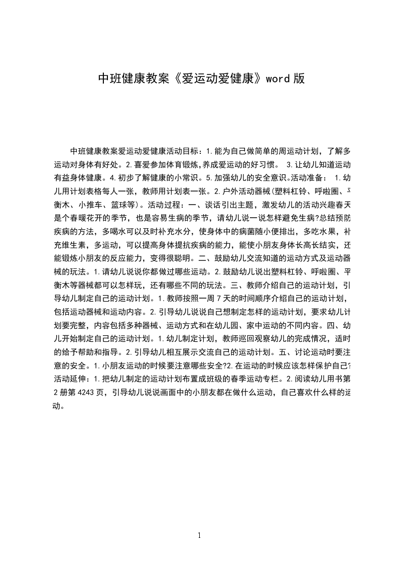 幼儿园中班健康公开课教案爱运动爱健康活动目标: