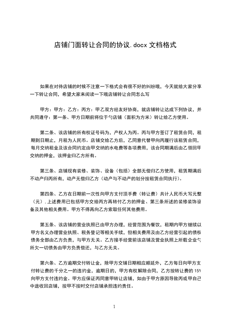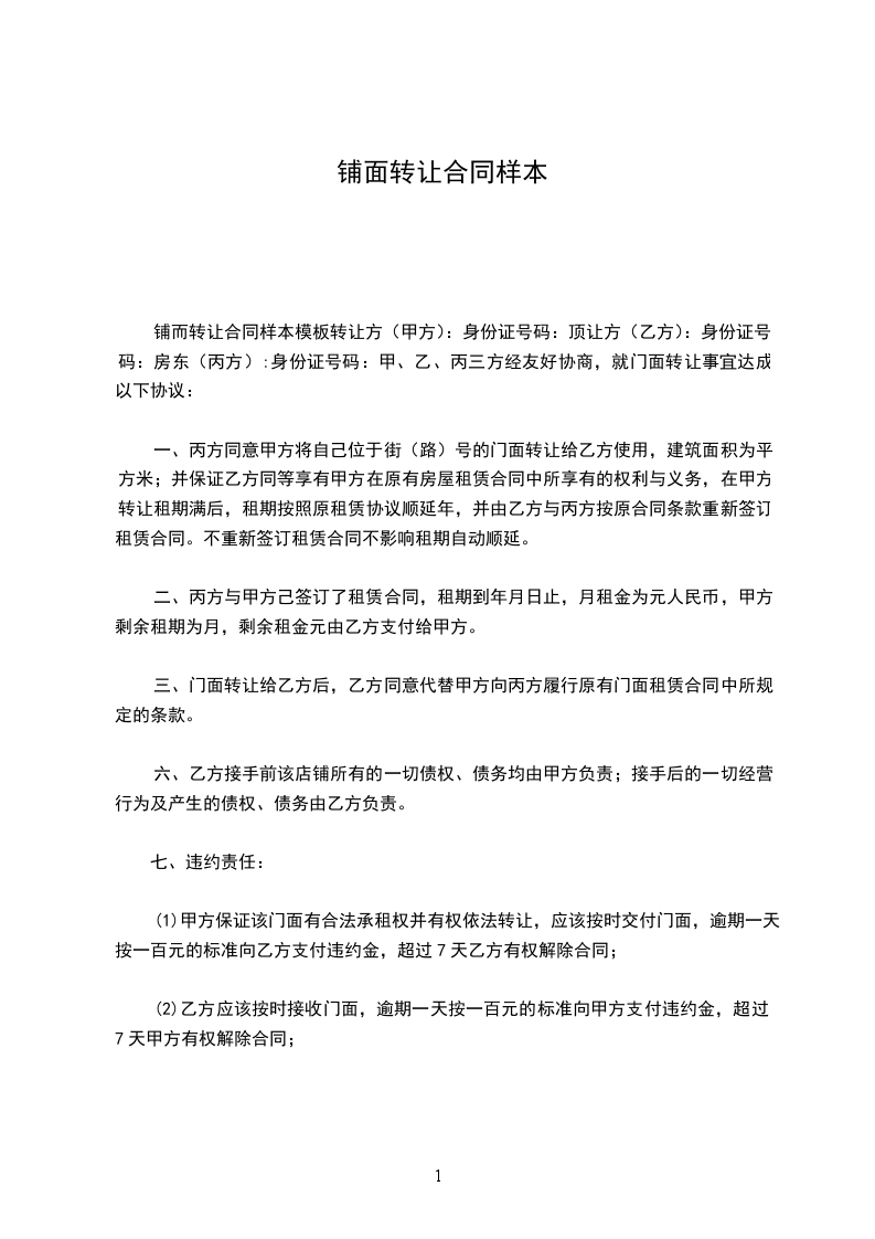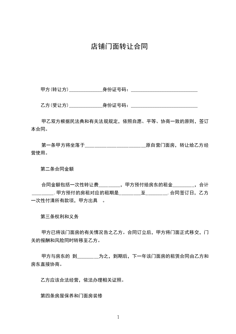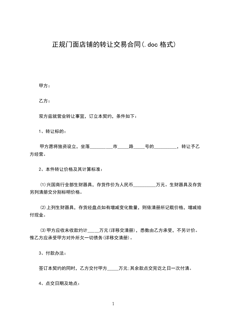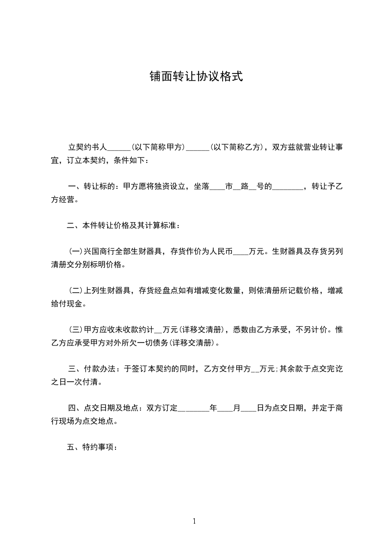一、转让标的:甲方愿将独资设立,坐落____市__路__号的________,转让予乙方经营。