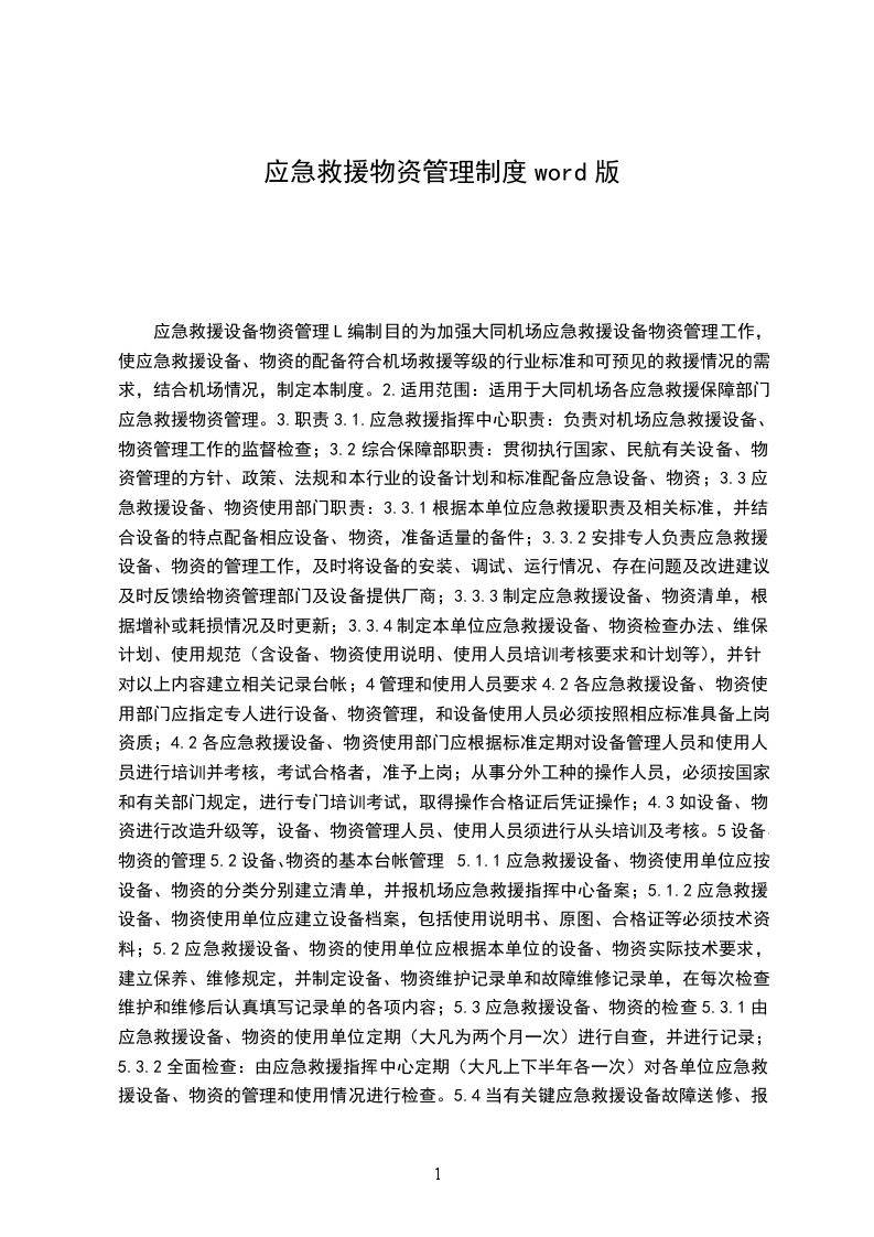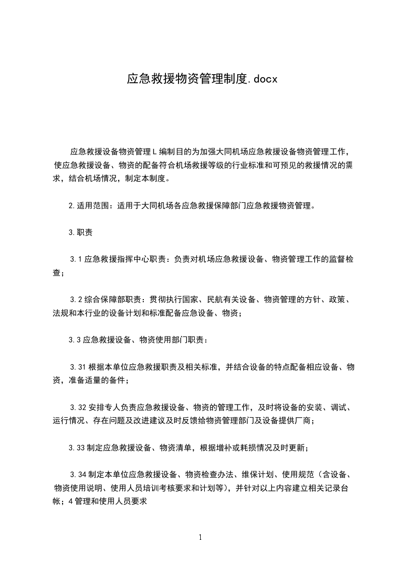 2.适用范围:适用于大同机场各应急救援保障部门应急救援物资管理。