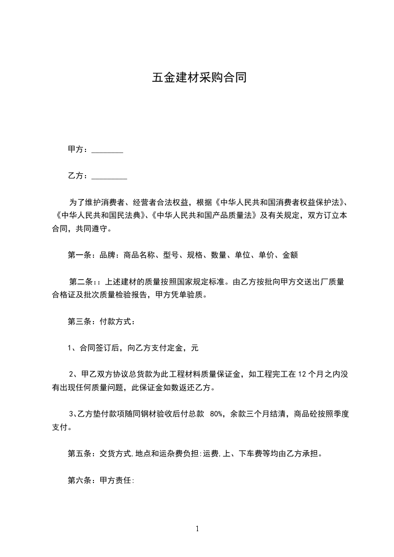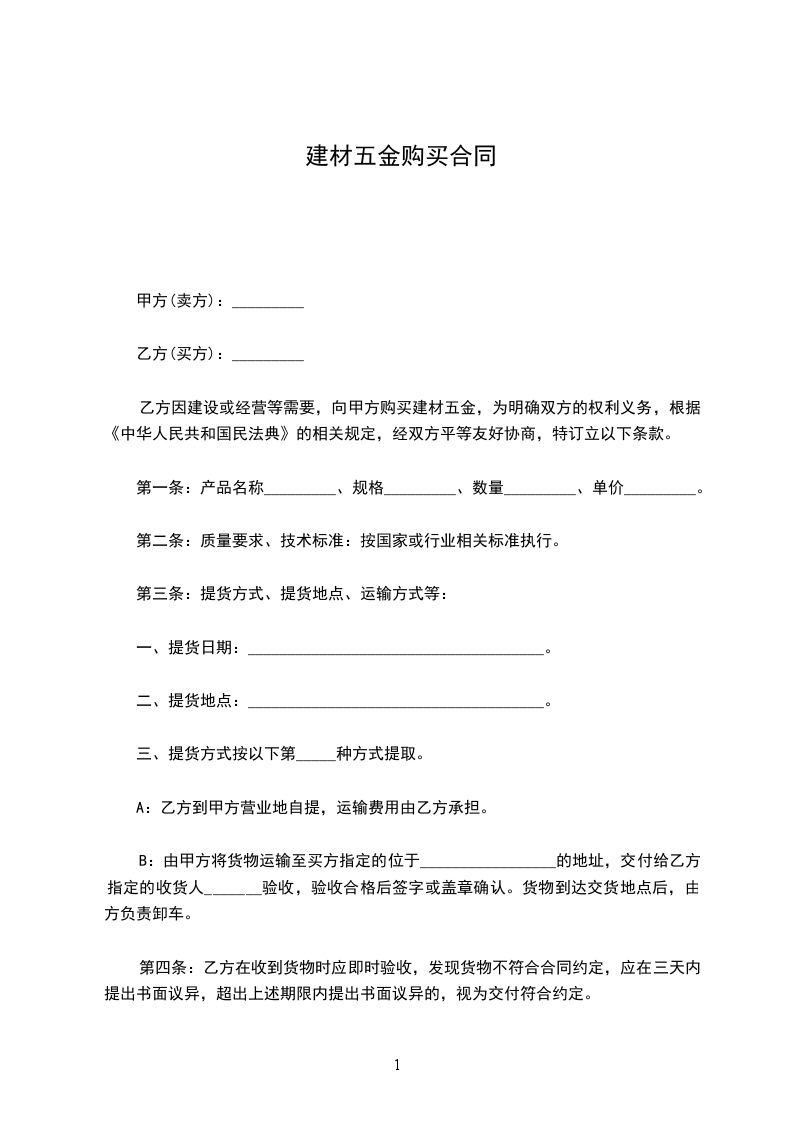 卖方:(以下称甲方)买方:(以下称乙方)根据___及其他有关法律,行政法规的规定,买卖双方在平等、自愿、公开、诚实信用的基础上就建材买卖事宜达成协议如下:
