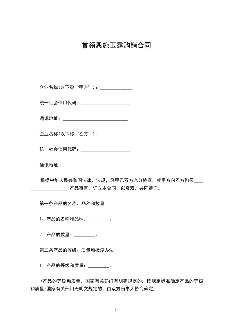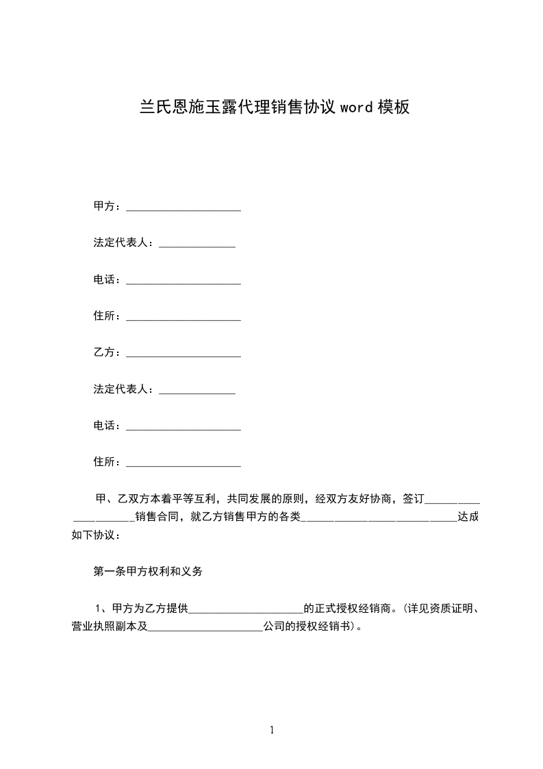 2、本着真诚合作、互惠互利、共赢市场的原则,现经甲乙双方友好协商,就甲方生产的___________________________________产品电系列产品销售事宜,达成协议如下:
