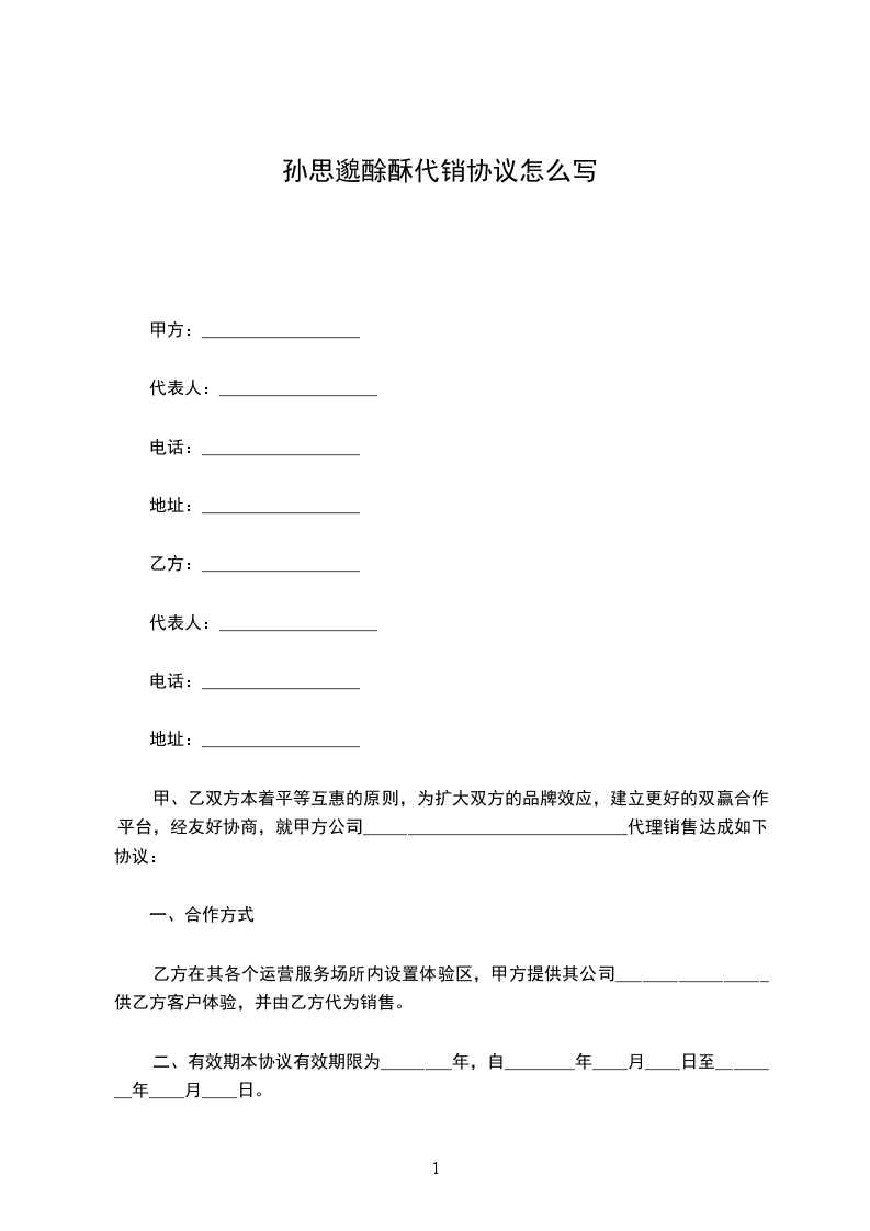 一、甲方授权乙方代理销售____________________________产品,乙方作为_________区域内的代理销售商,甲方将不再向该区域内的另外方供货,从而保证乙方独家销售权。