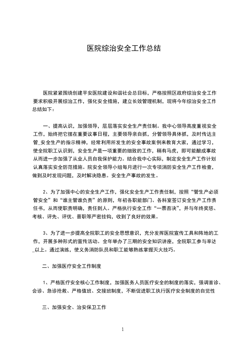 二、增强医疗平安工作