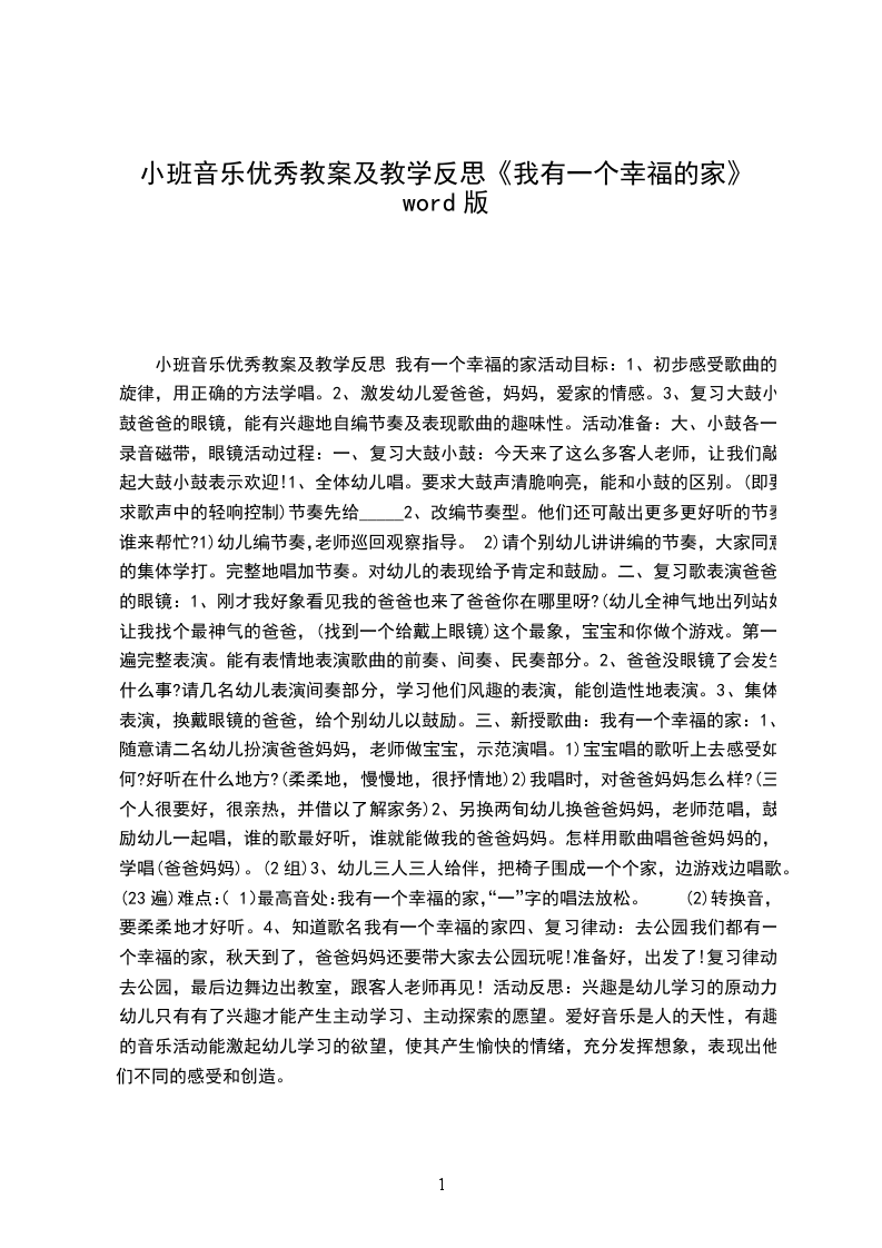 小班音乐优秀教案及教学反思 我有一个幸福的家活动目标: