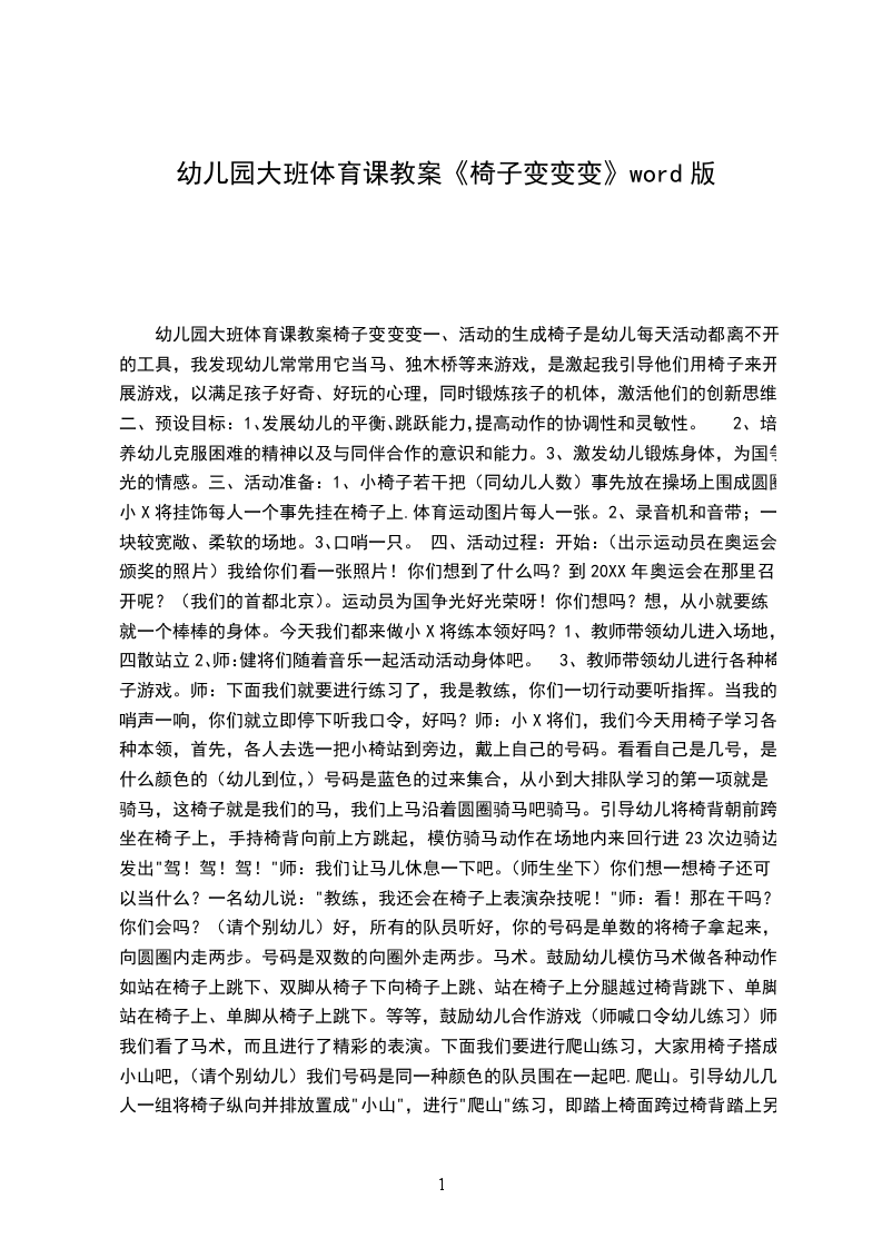 幼儿园大班体育课教案椅子变变变
