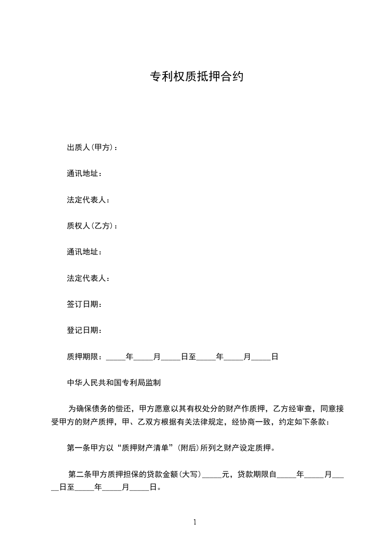 第6条 对质押期间进行专利权转让或实施许可的约定