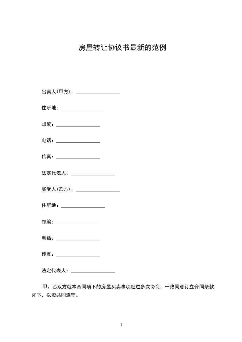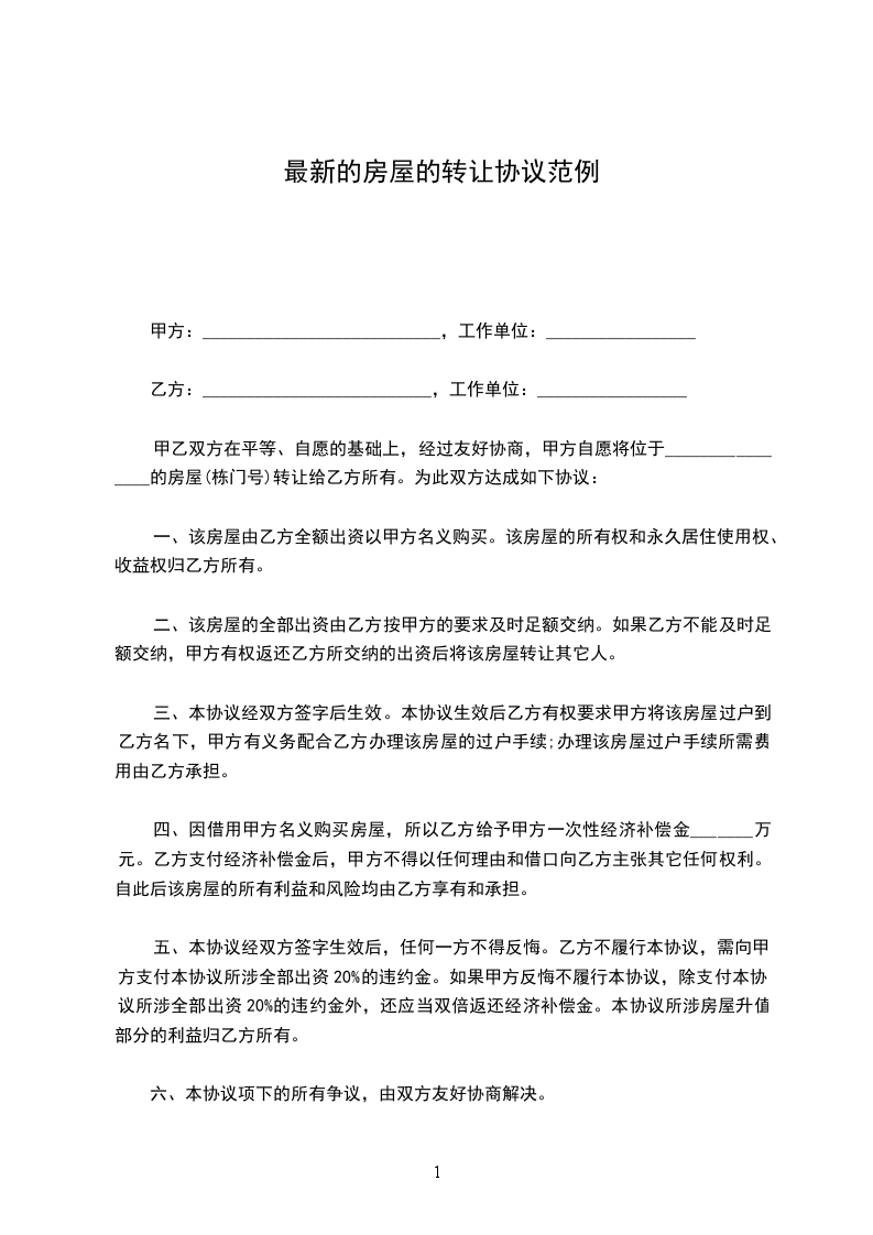 双方商定该房屋转让价格为_______________元整。