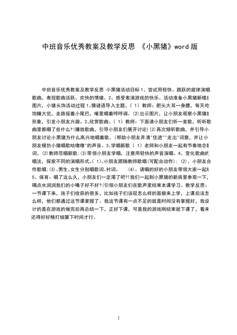 中班音乐优秀教案及教学反思 小黑猪活动目标