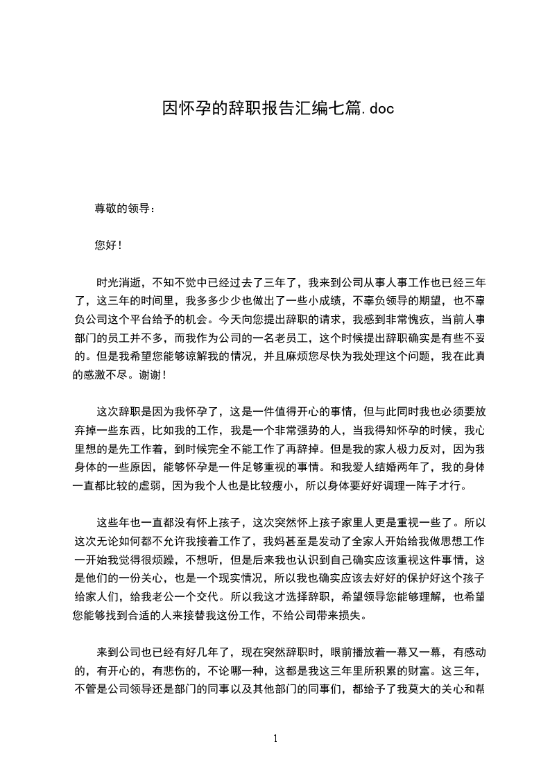 因怀孕的辞职报告篇7