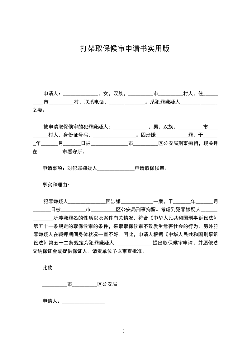 申请人:______________申请事项:_________________对犯罪嫌疑人_______________申请取保候审。