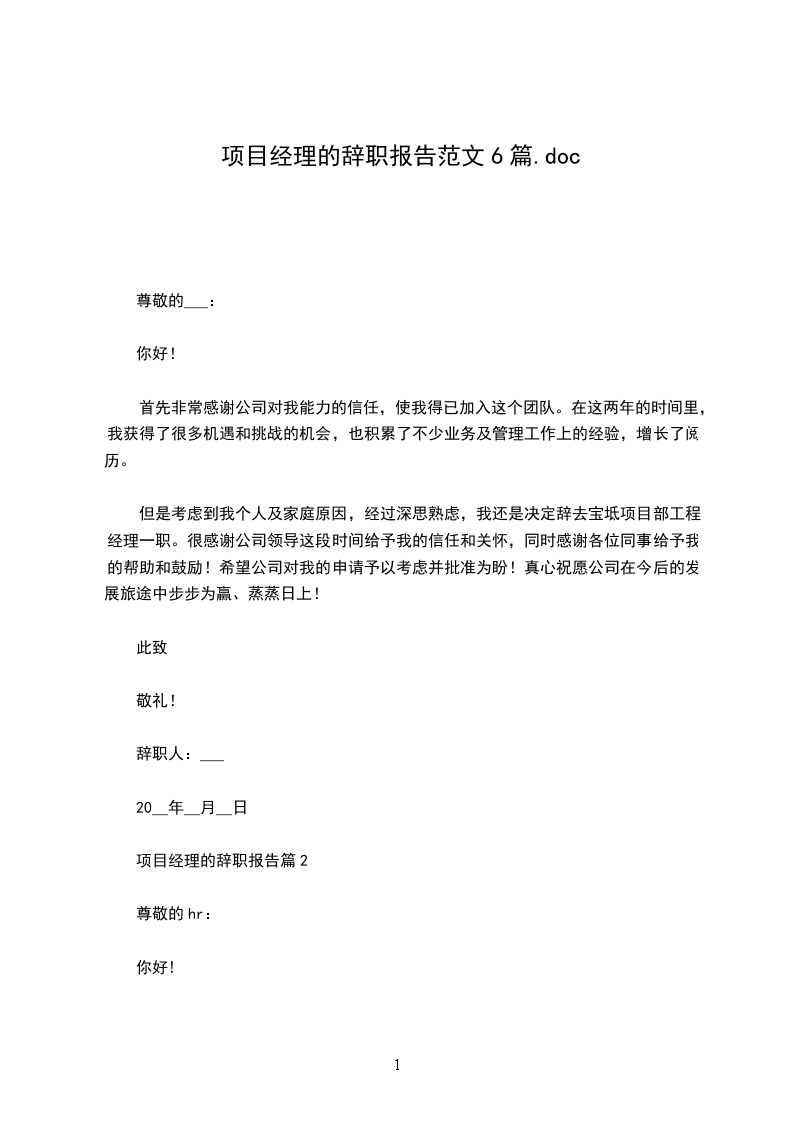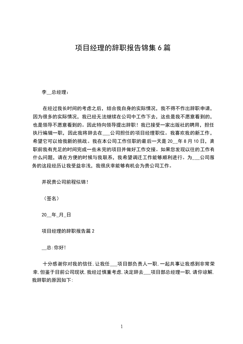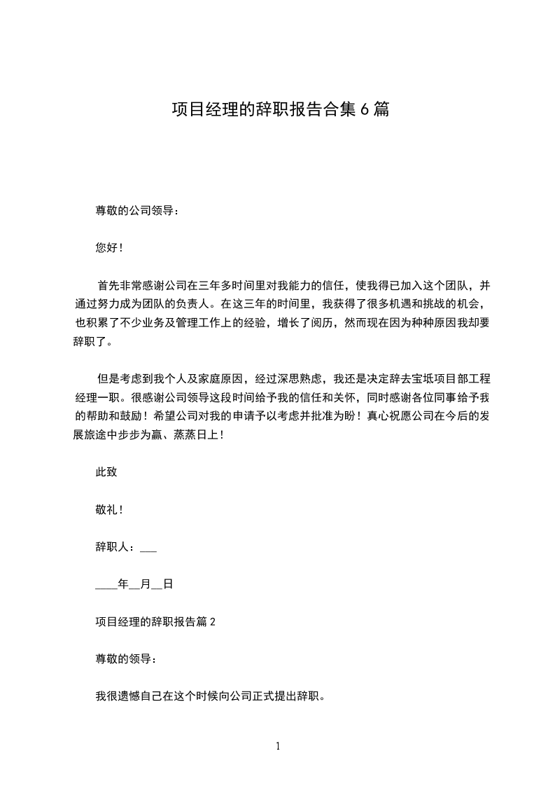 项目经理的辞职报告篇6