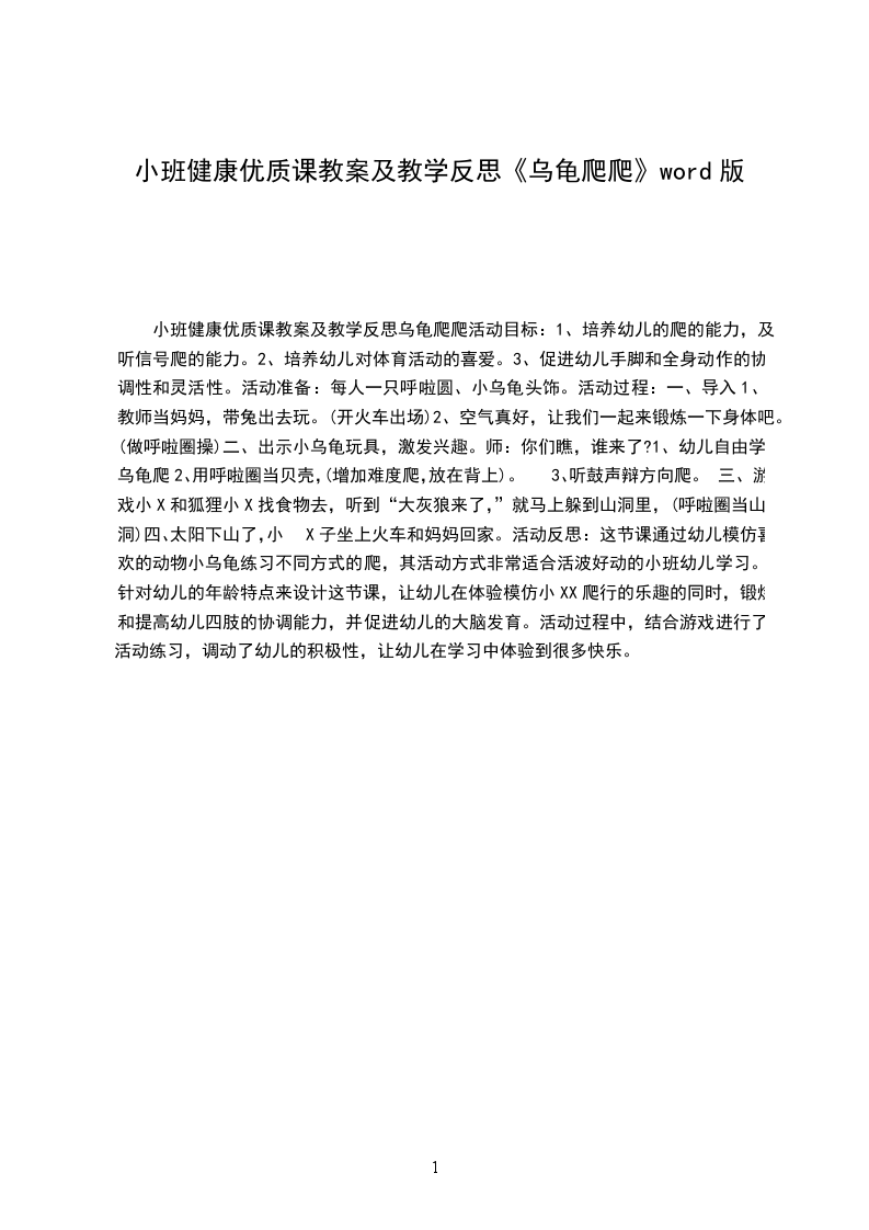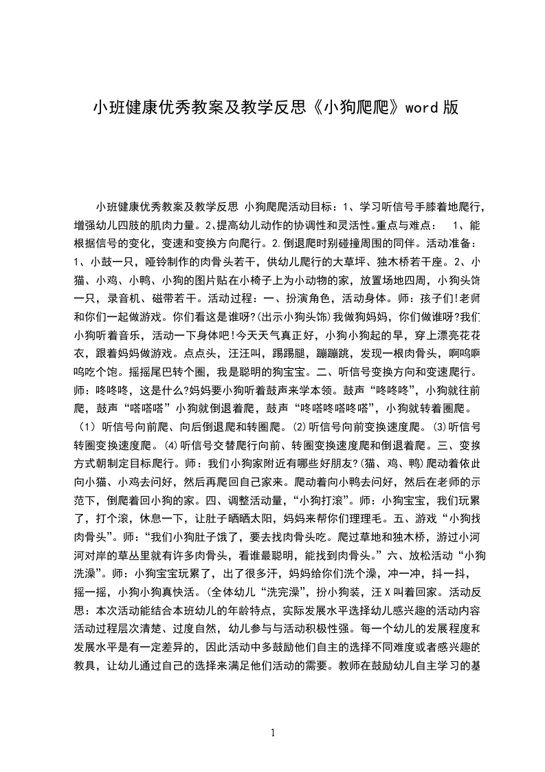 小班健康优秀教案及教学反思 小狗爬爬活动目标: