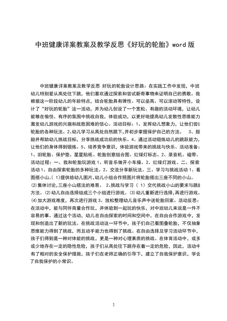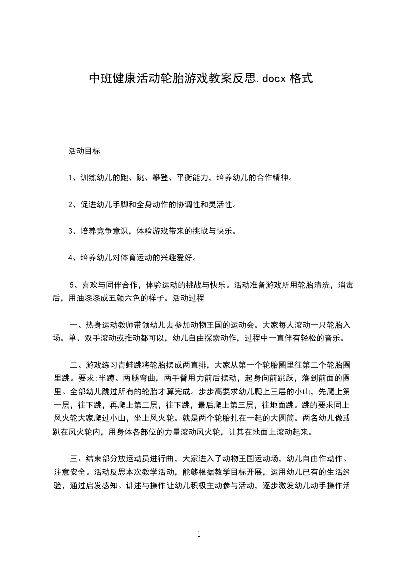 中班健康下学期教案轮胎游戏活动目标