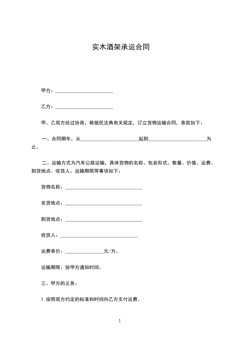 甲、乙双方经过协商,根据民法典有关规定,订立货物运输合同,条款如下: