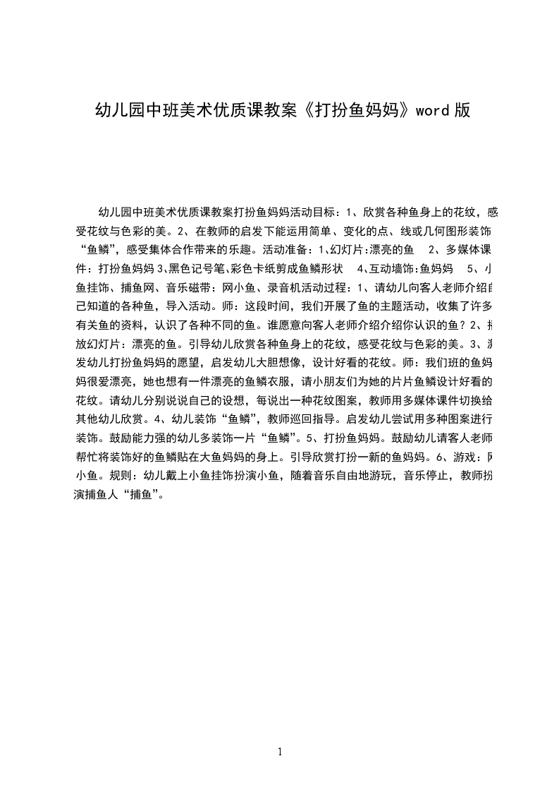 幼儿园中班美术优质课教案打扮鱼妈妈活动目标: