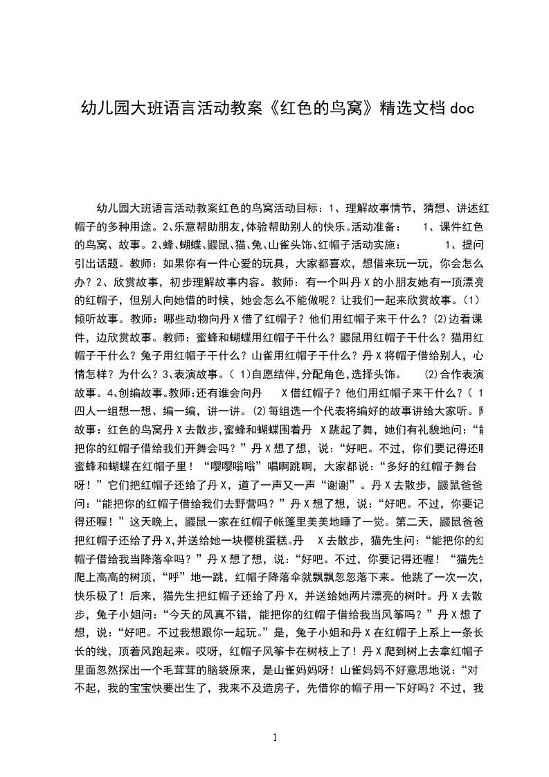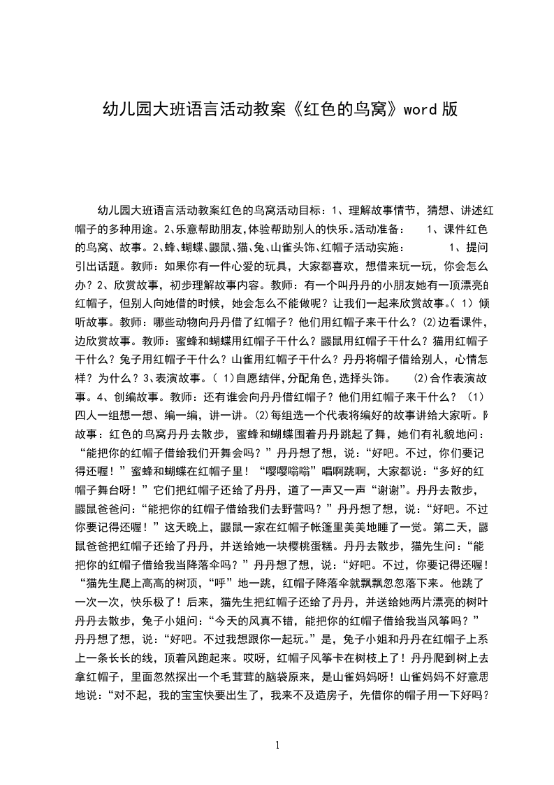 幼儿园大班语言教案鸟窝里的树在欣赏故事的过程中,体验理解文学作品所表达的关爱之情。